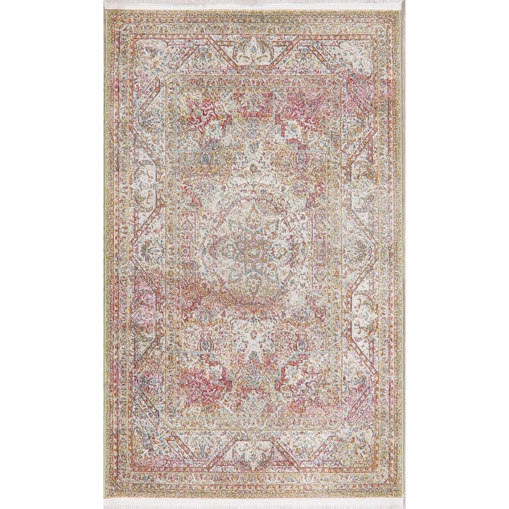 Abstract Multi-Color Vintage Style Distressed Heat-Set Area Rugs