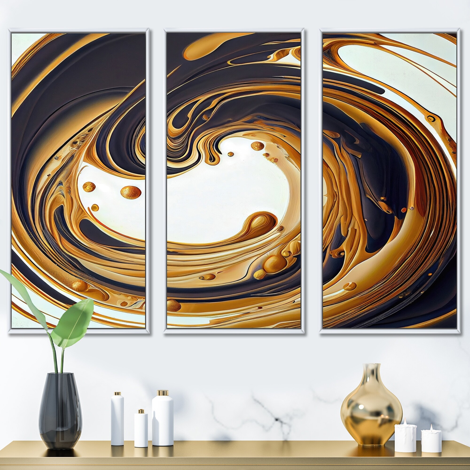 Designart "Black And Gold Swirl III" Modern Spiral Framed Canvas Art Print - 3 Panels