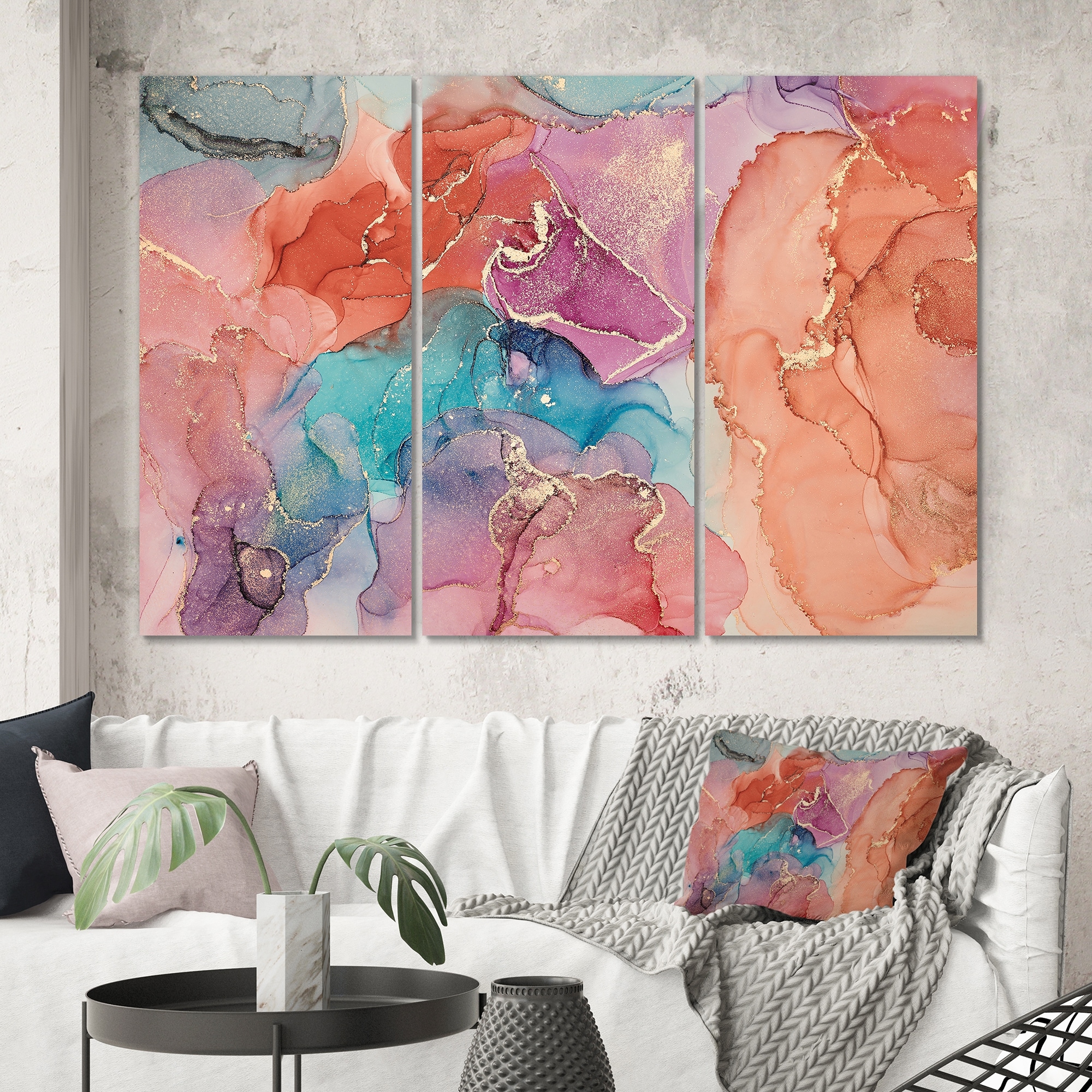 Designart "Pink And Gold Marble Abstract III" Abstract Marble Framed Canvas Art Print - 3 Panels