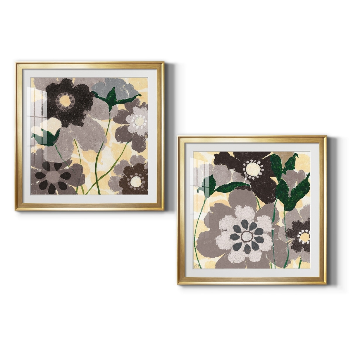 Designart "Abstract Organic Shapes in Retro Gradients VIII" Abstract Framed Art Set of 2 Pieces