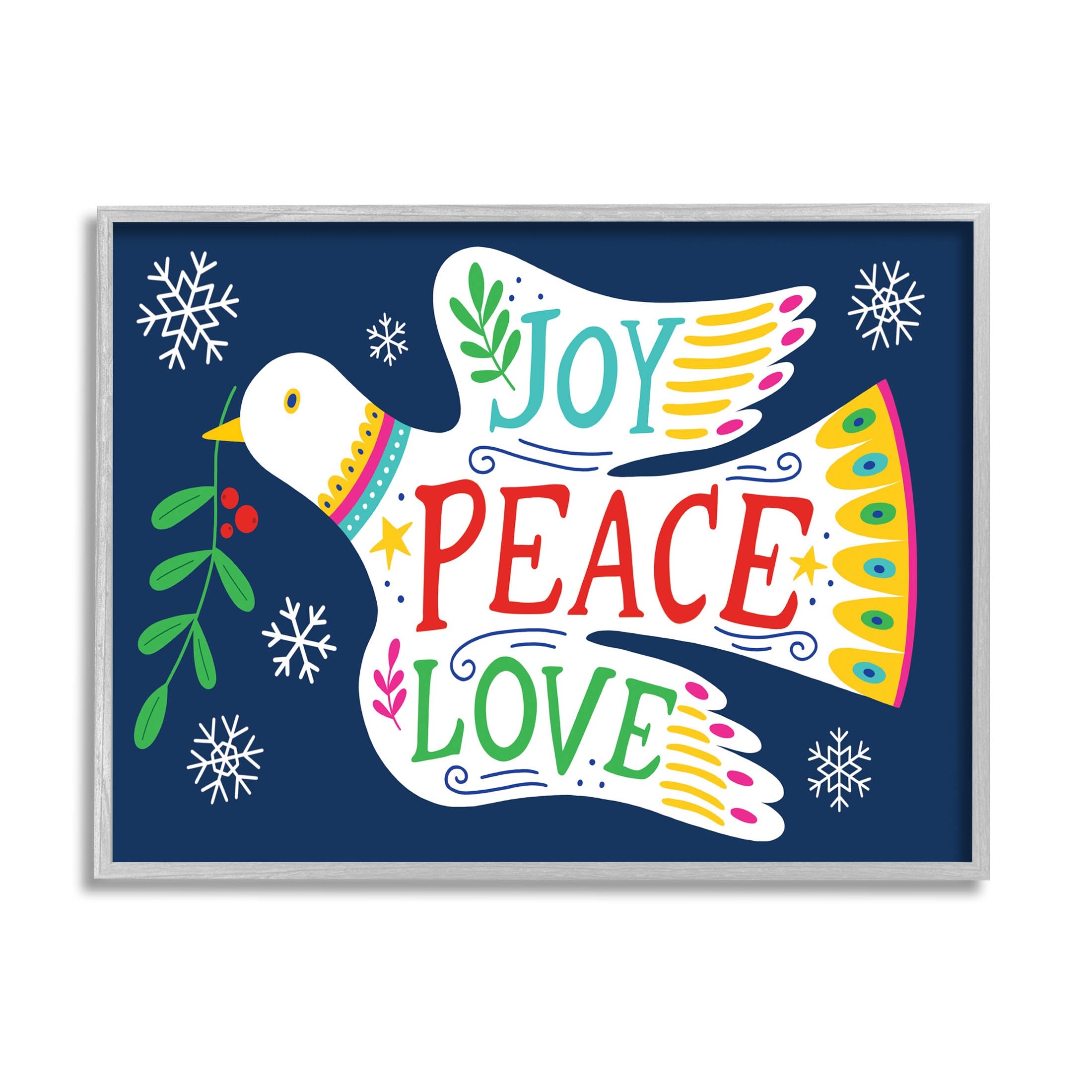 Stupell Joy Peace Love Dove Holly Sprig Framed Giclee Art by Nina Seven