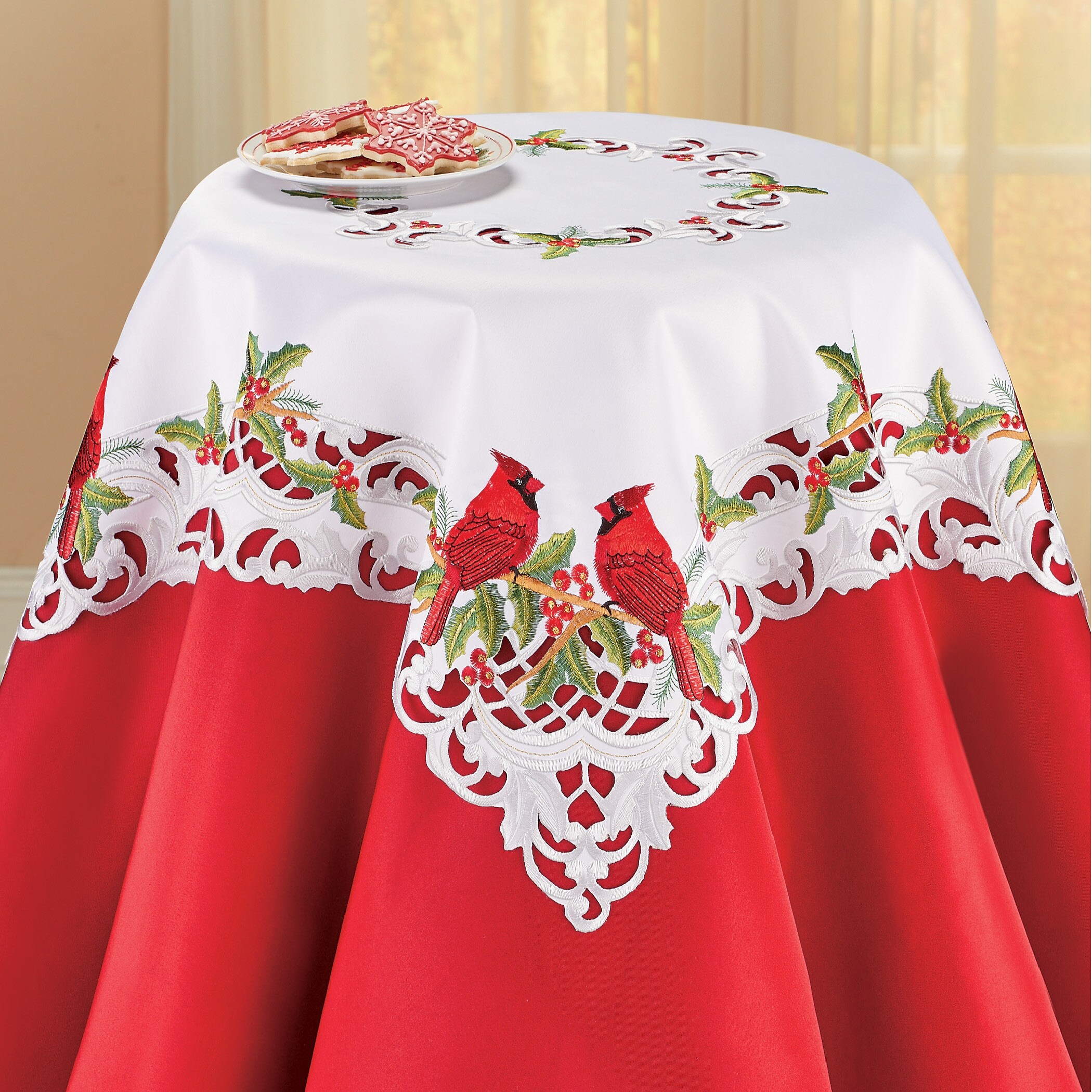 Lovely Cardinals on Holly Branches Table Linens
