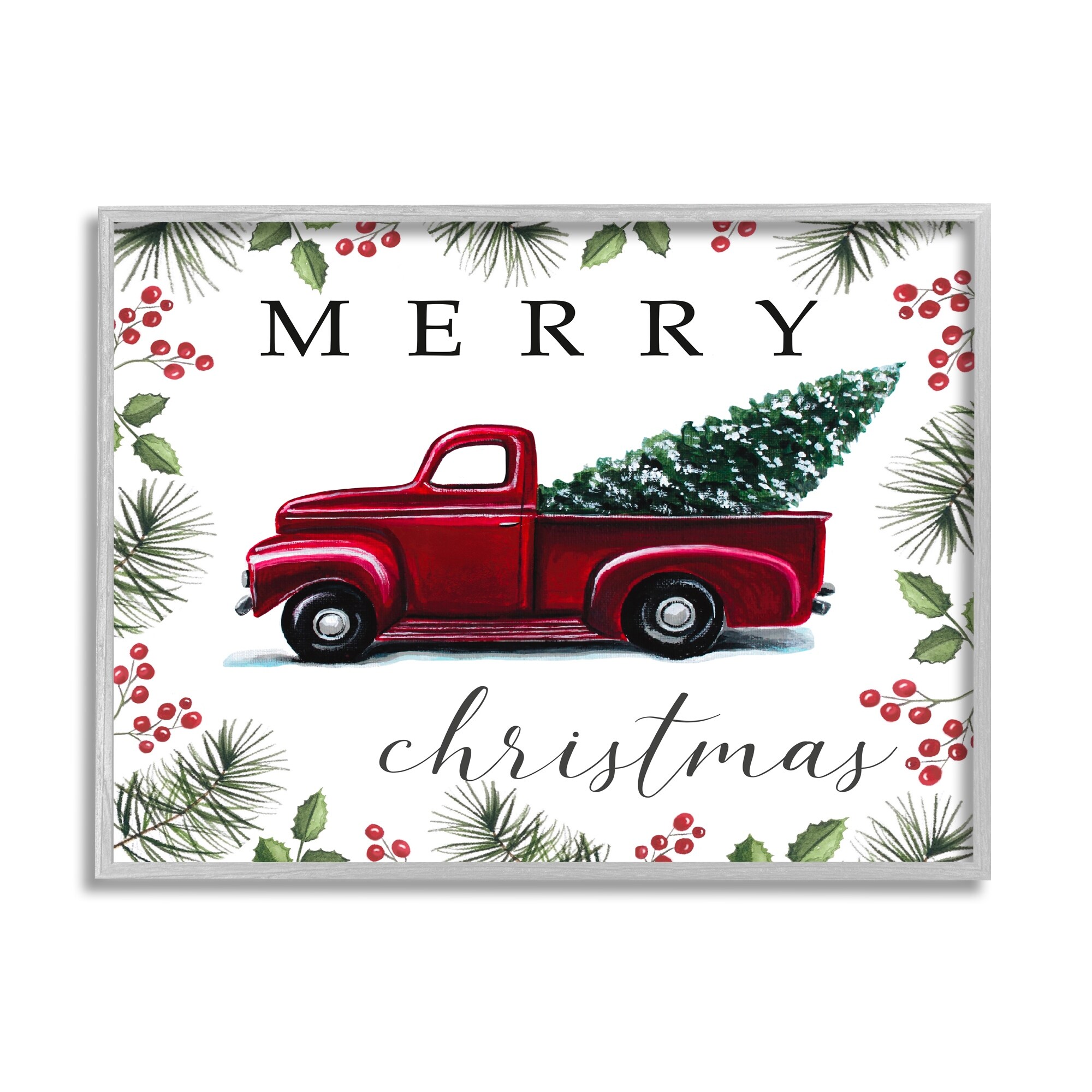 Stupell Industries Merry Christmas Traditional Red Truck Winter Holly Border Framed Wall Art - White