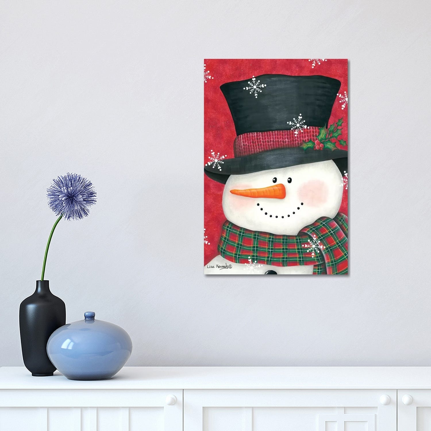 iCanvas "Holly & Red Plaid Snowman" by Lisa Kennedy Canvas Print
