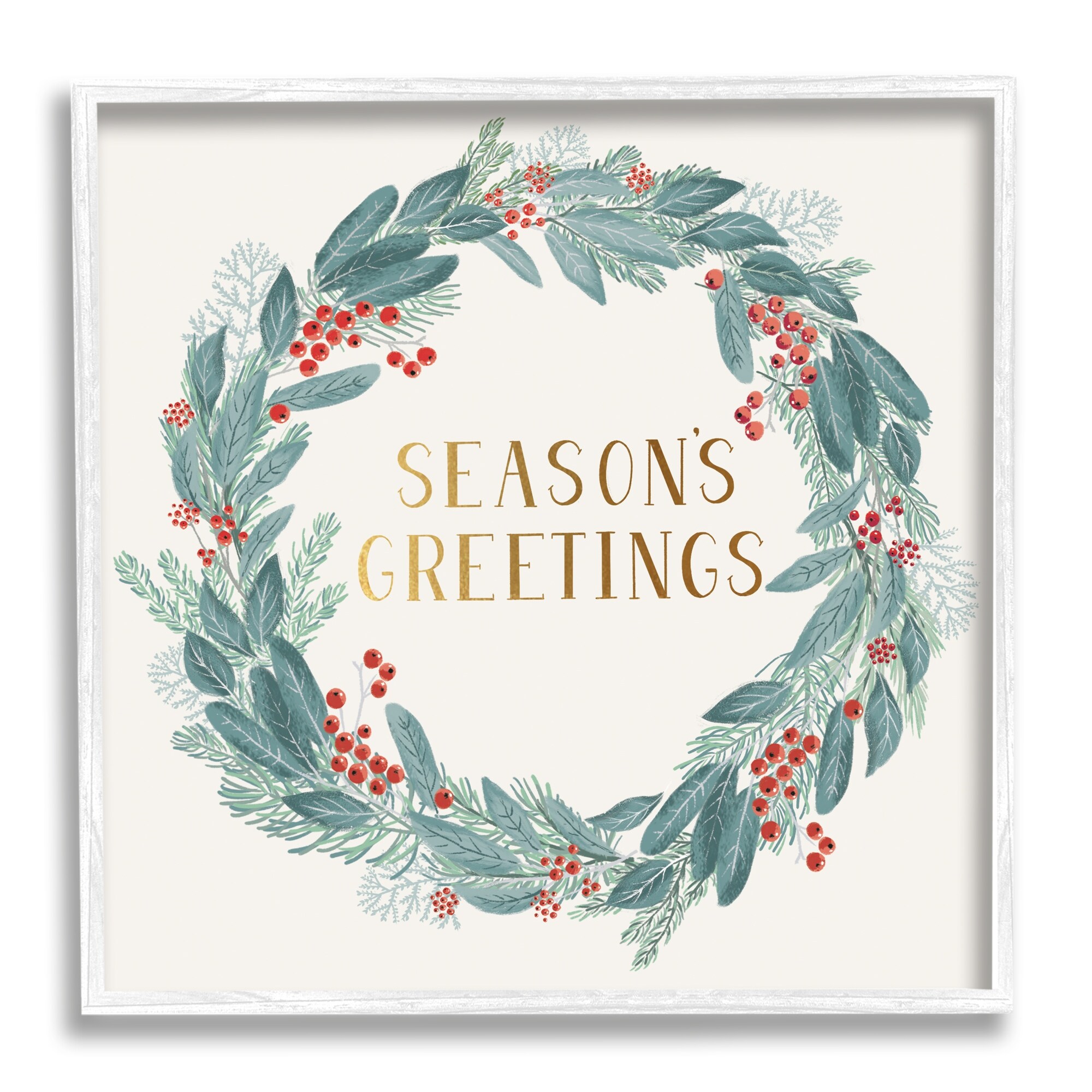 Stupell Industries Winter Foliage Red Holly Wreath Season's Greetings Typography Framed Wall Art - Green