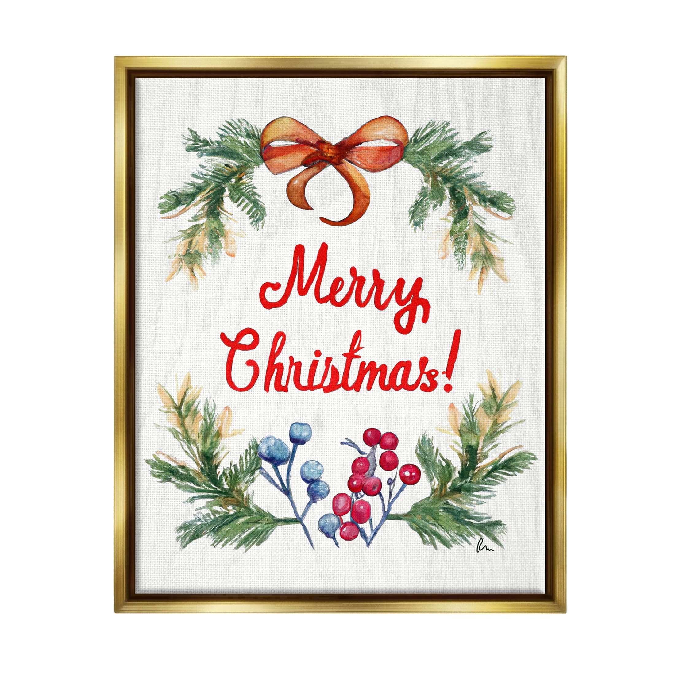 Stupell Merry Christmas Holiday Holly Berry Floater Canvas Wall Art by Ramona Murdock