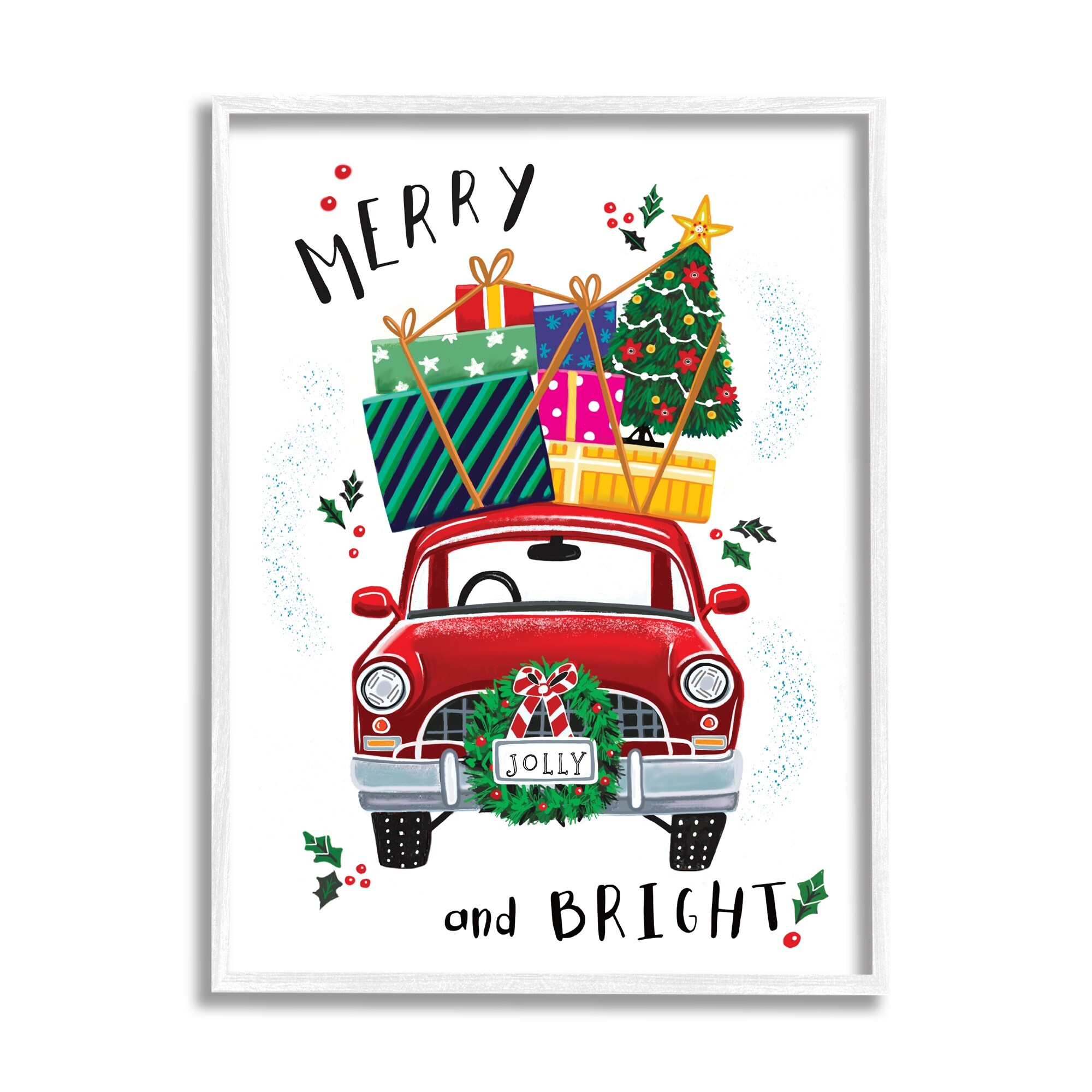 Stupell Merry Joy Cheer Holly Berries Framed Giclee Art by Caverly Smith