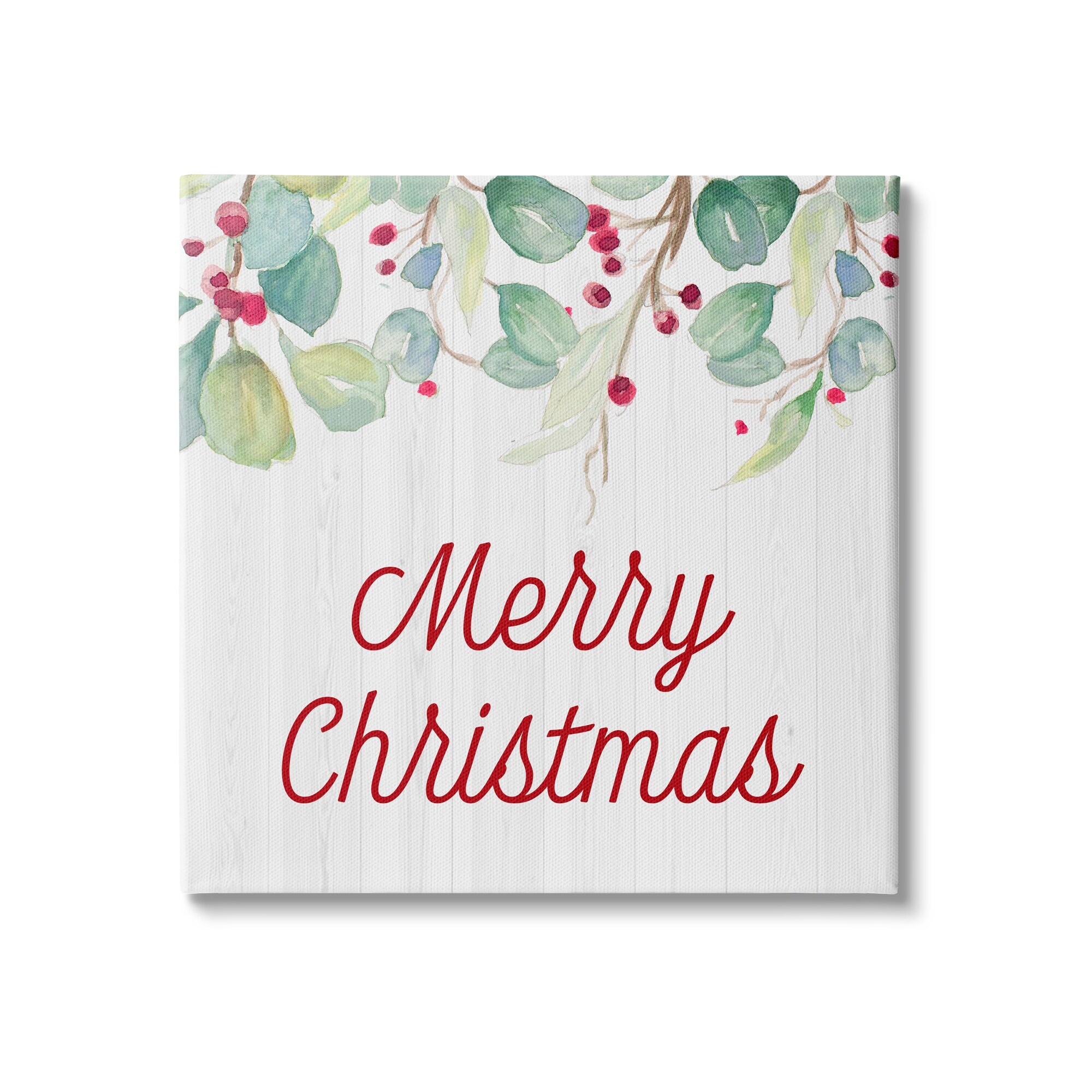Stupell Industries Merry Christmas Sentiment Festive Falling Red Holly Vines Canvas Wall Art - White
