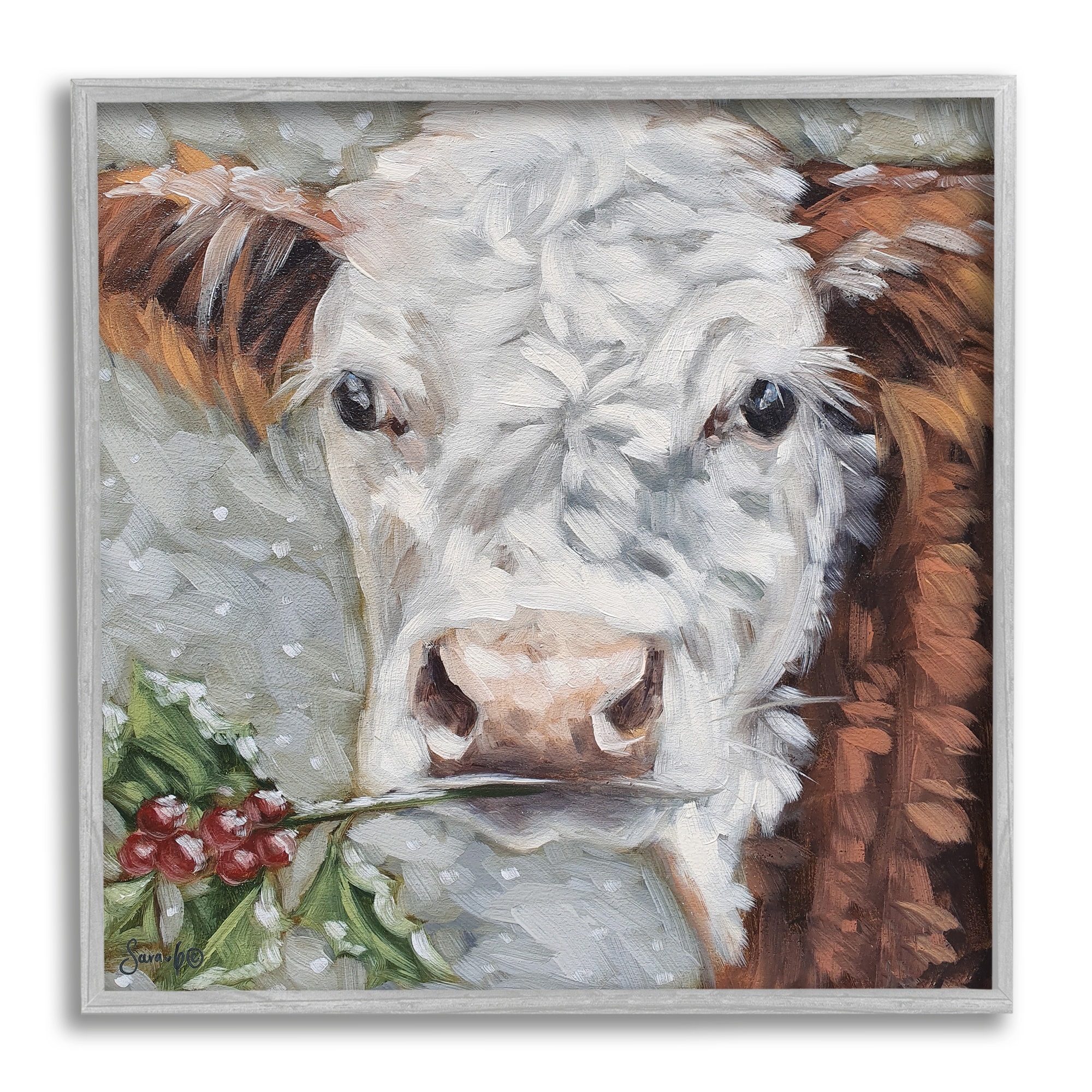 Stupell Industries Snowy Winter Cow Holly Berries Framed Giclee Art by Sara G. Designs