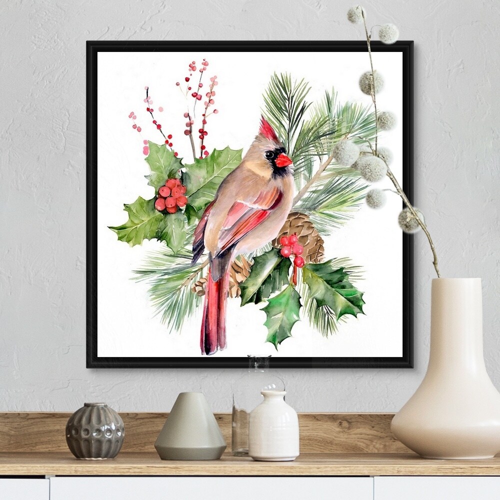 Cardinal Holly Christmas II Black Float Frame Canvas Art