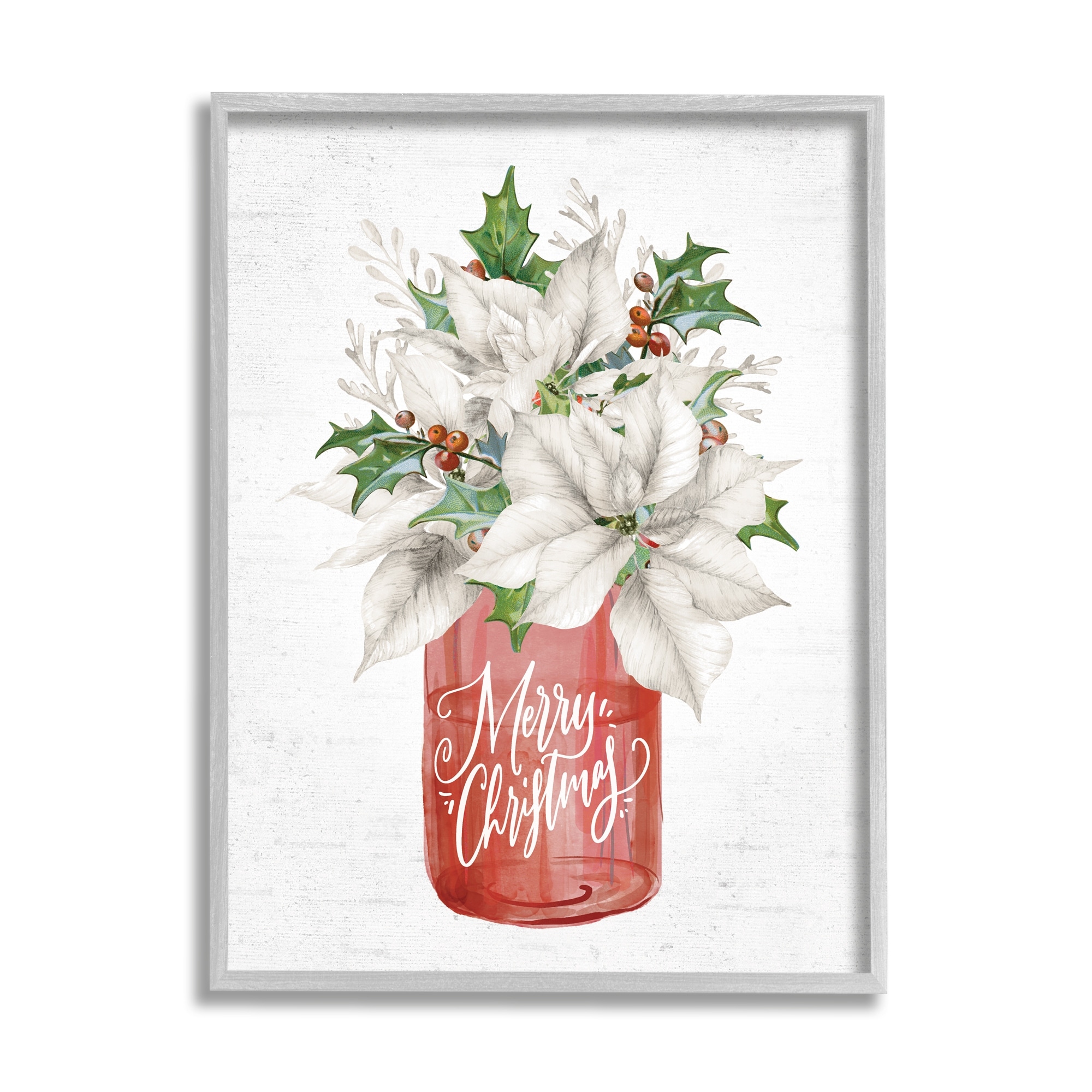 Stupell Merry Christmas White Poinsettia Holly Berries Bouquet Framed Wall Art - Red