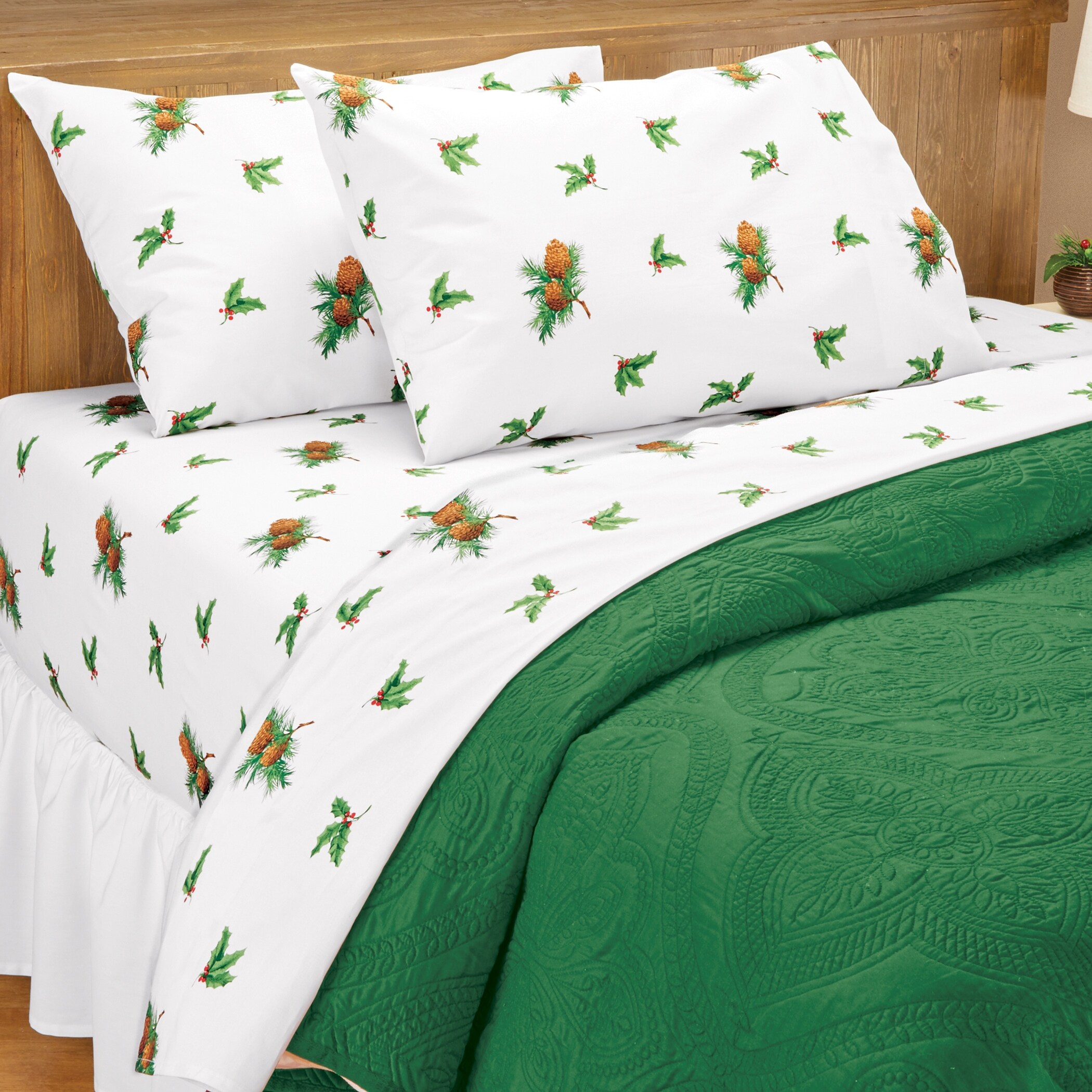 Pine Sprigs and Holly Bed Sheet and Pillowcase Set