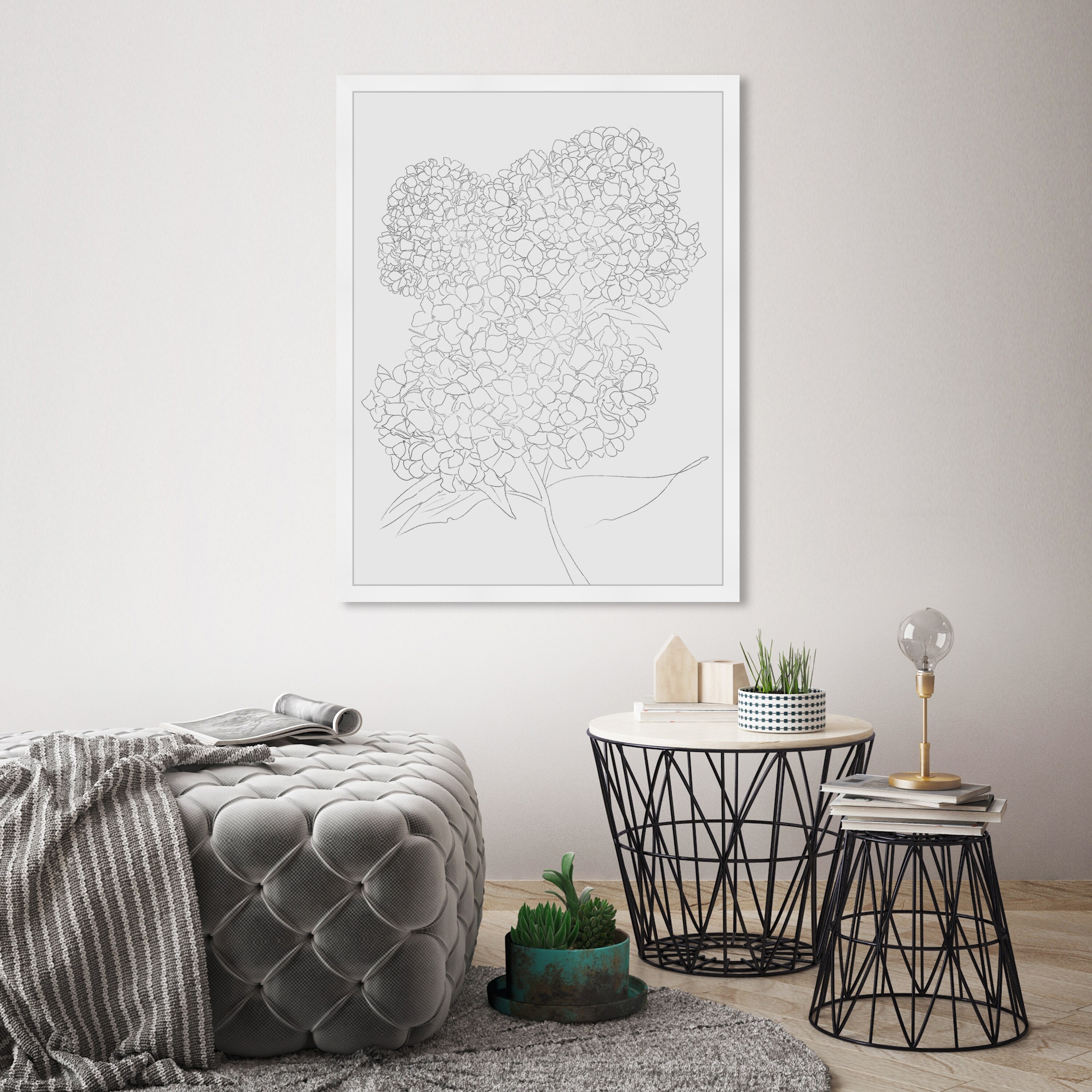 Oliver Gal 'Hydrangea' Floral and Botanical Wall Art Framed Print Florals - Gray, White