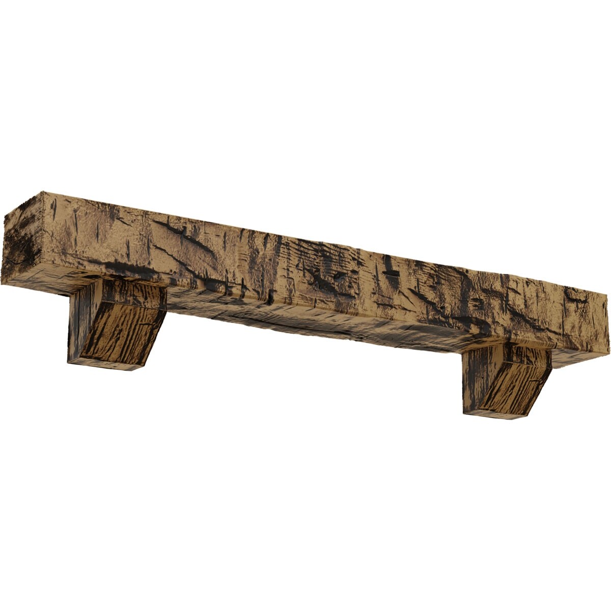 84"W Hand Hewn Faux Wood Fireplace Mantel Kit w/ Ashford Corbels
