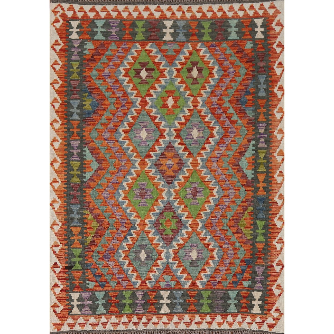 Reversible Kilim Rug Flatweave Wool Oriental Foyer Carpet - 3'7" x 5'2"