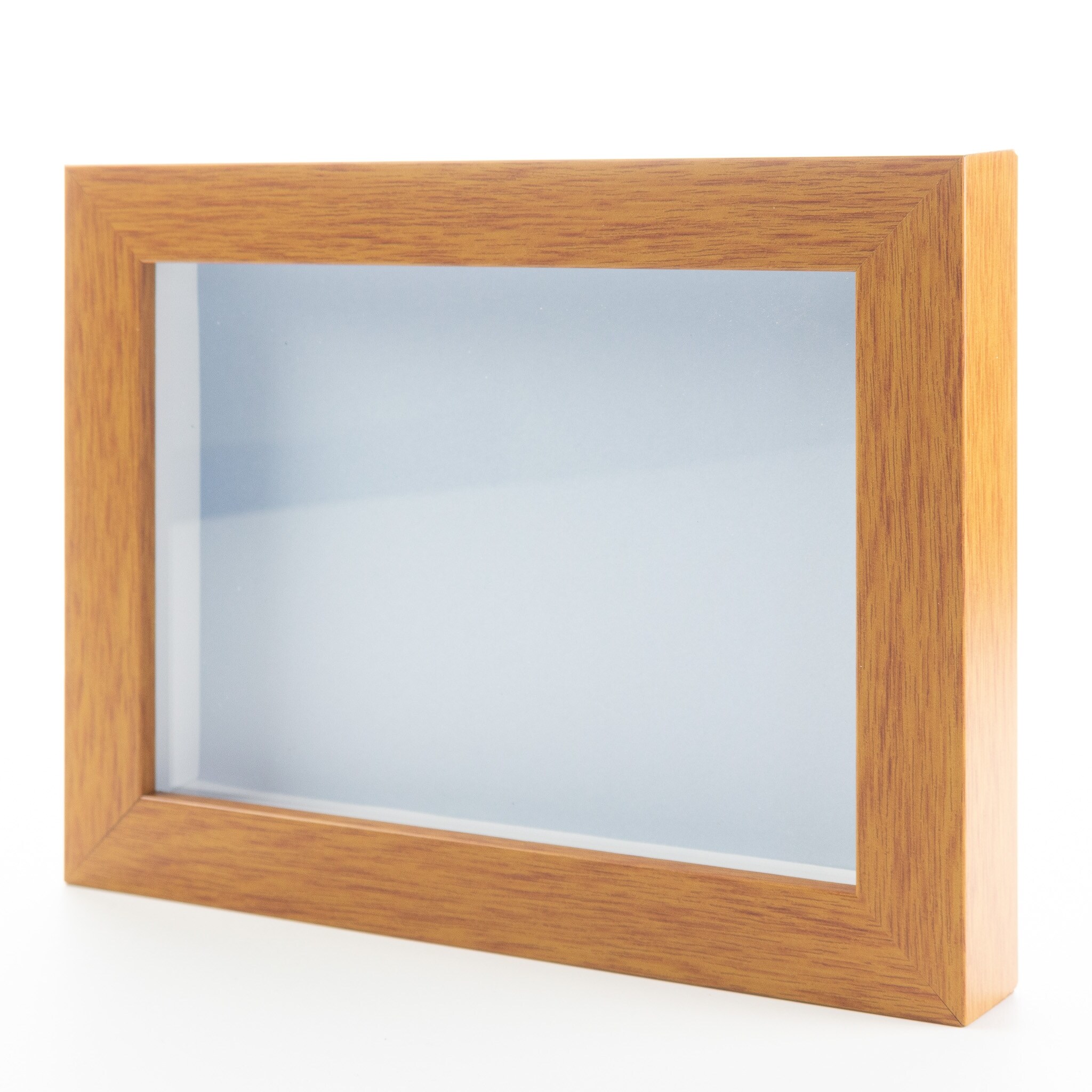Honey Pecan 24x36 Wood Shadow Box with Blue Acid-Free Backing - With 5/8" Usable Depth - With UV Acrylic & Hanging Hardware