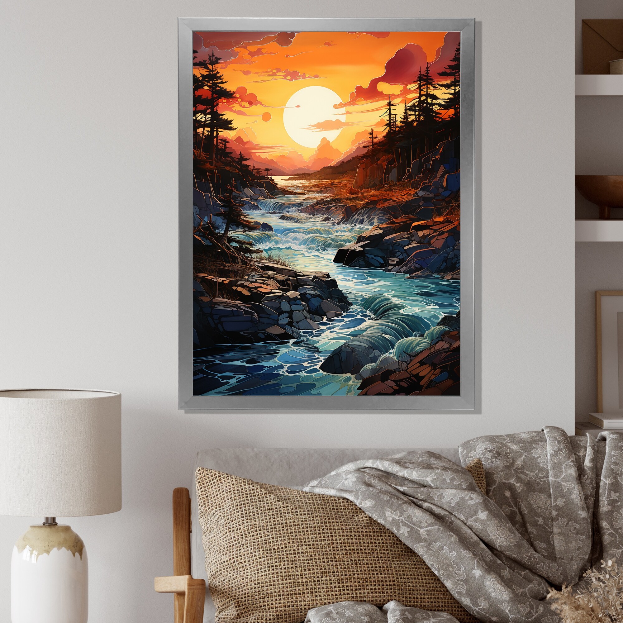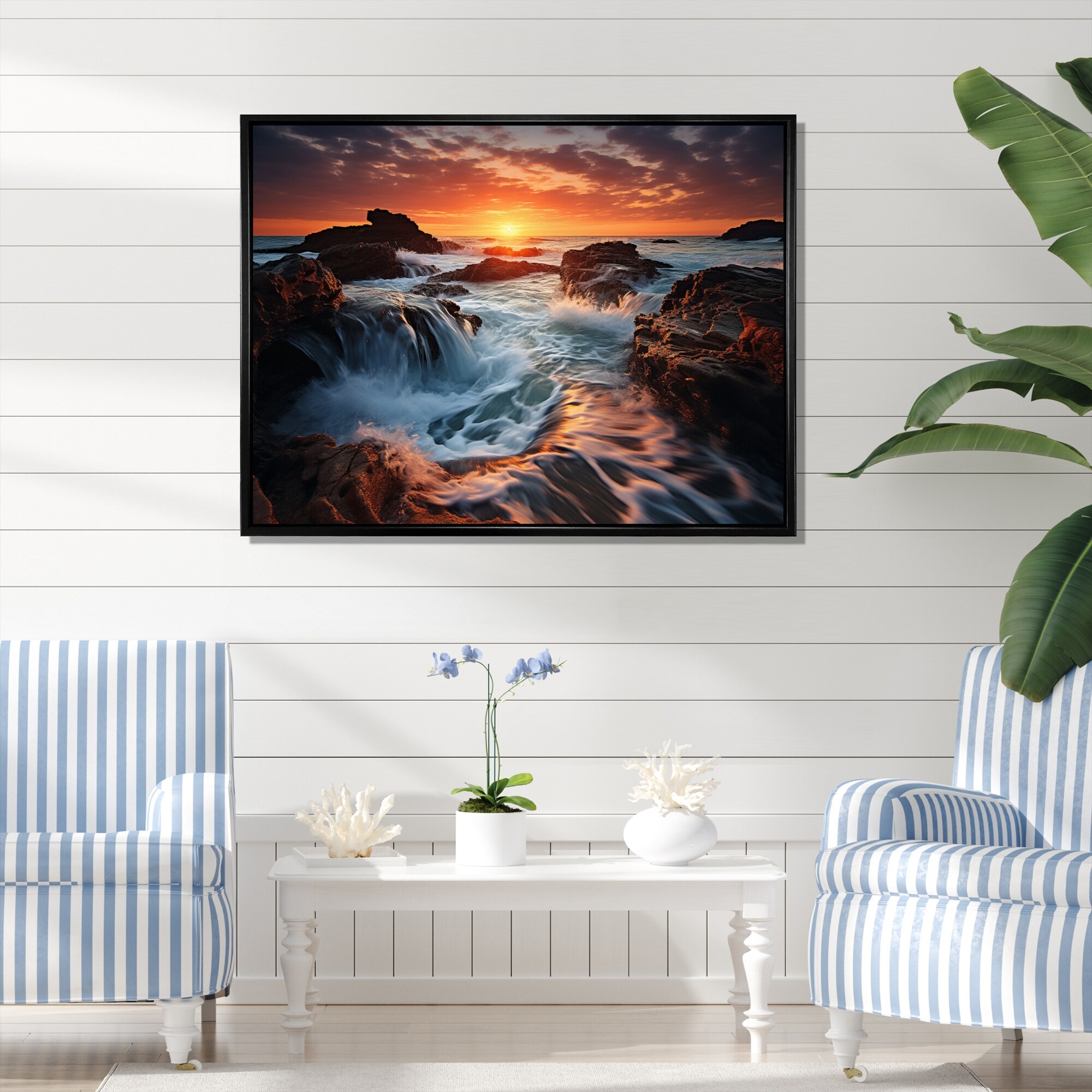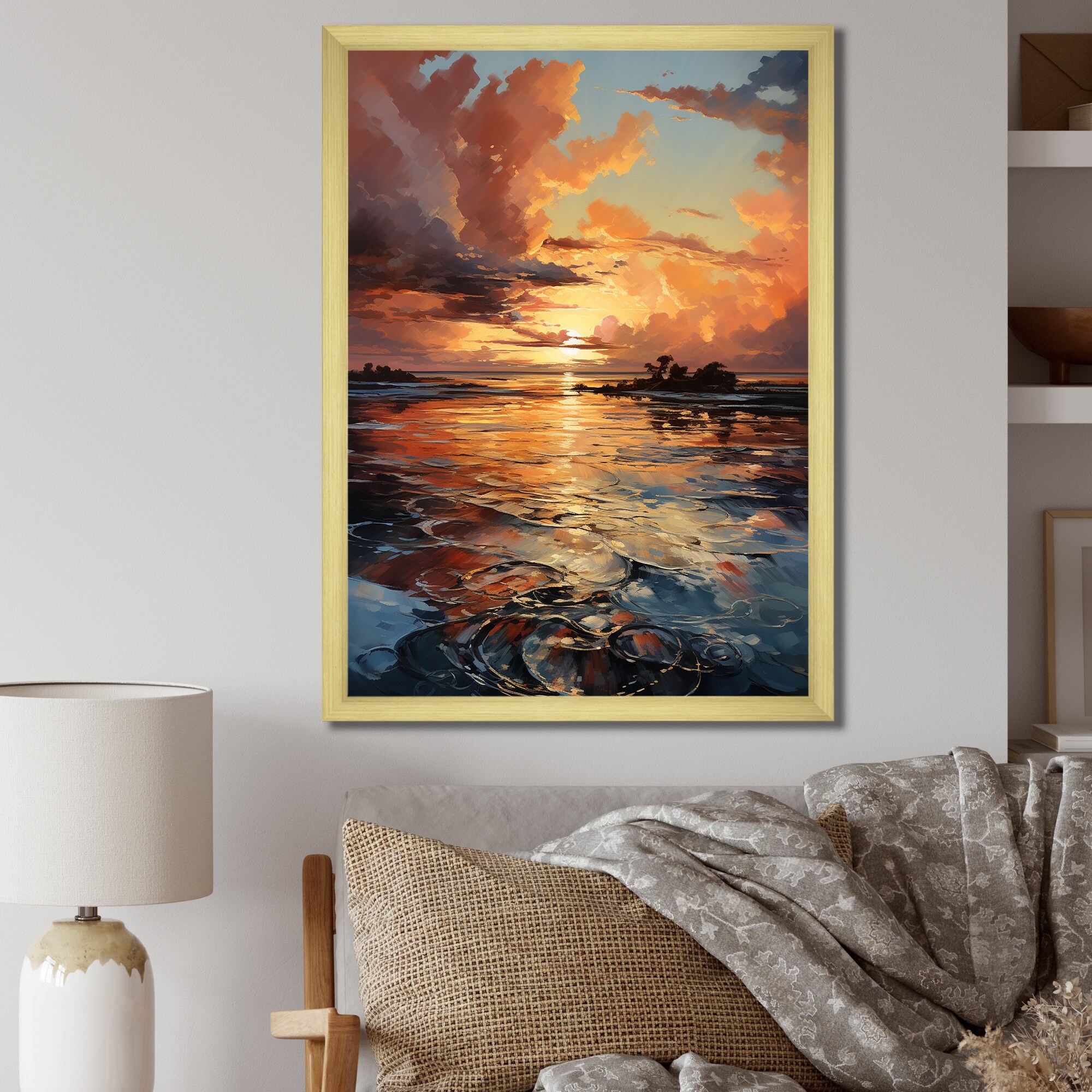 Designart "Sunset Ocean Horizons III" Sunrisesunset Framed Wall Art Living Room
