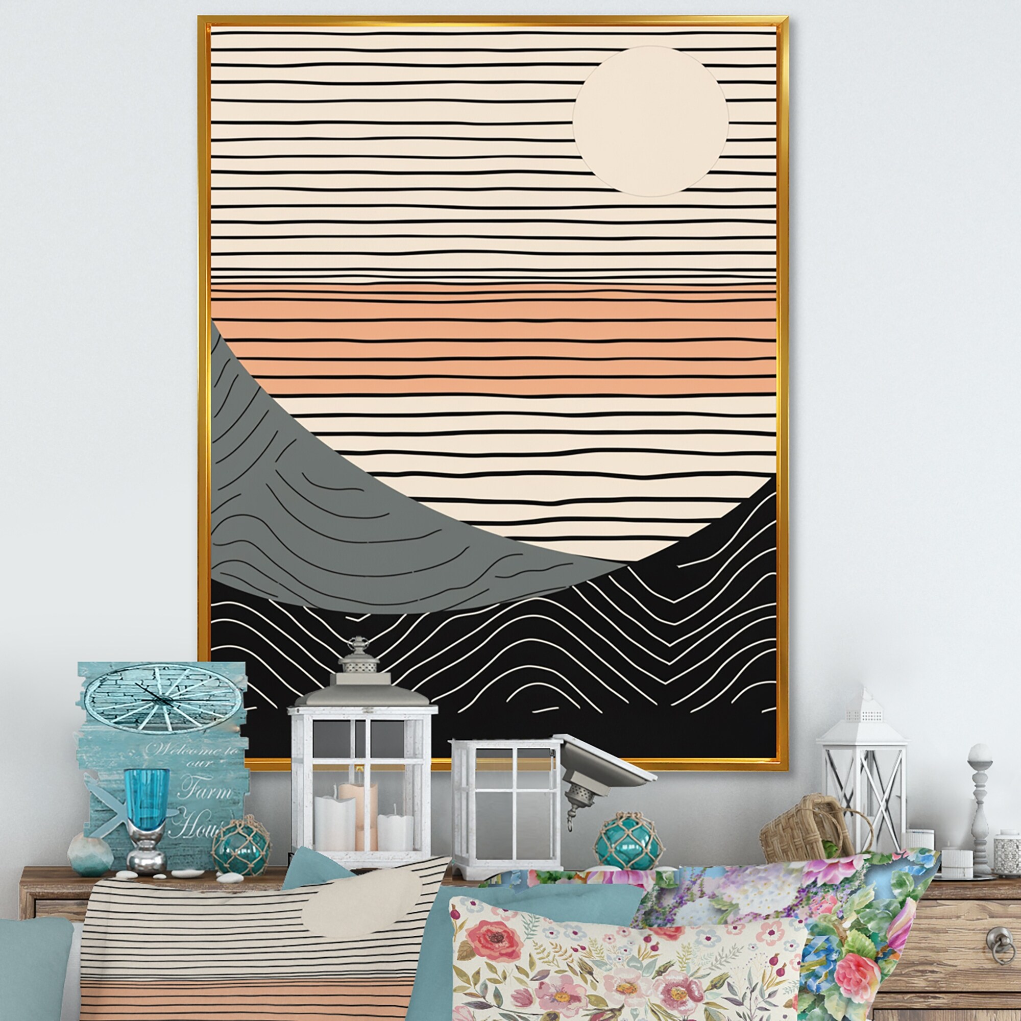 Designart "Simple Horizon III" Abstract Shapes Framed Canvas Print