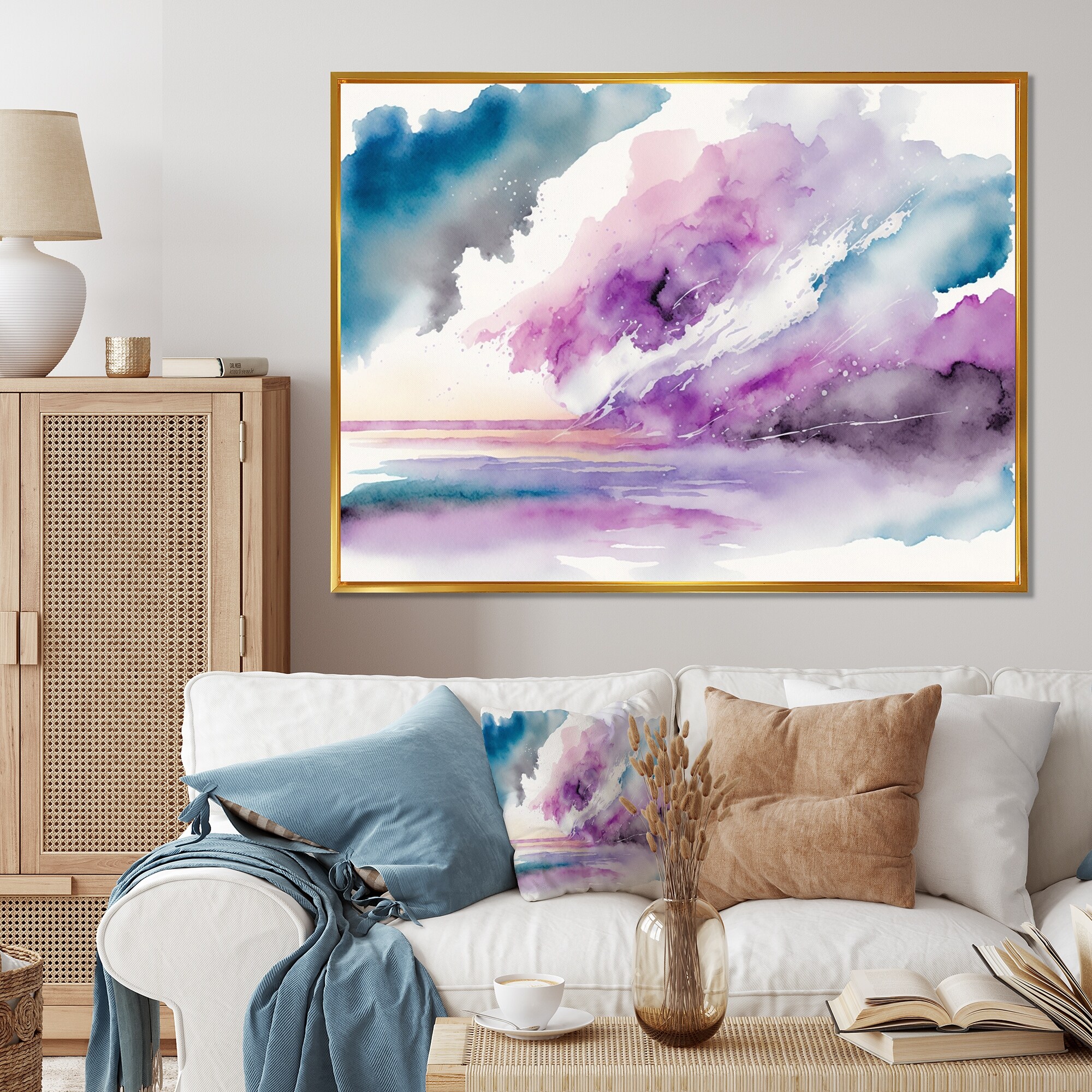 Designart "Violet Storm At the Horizon I" Abstract Liquid Ink Framed Canvas Wall Art Print