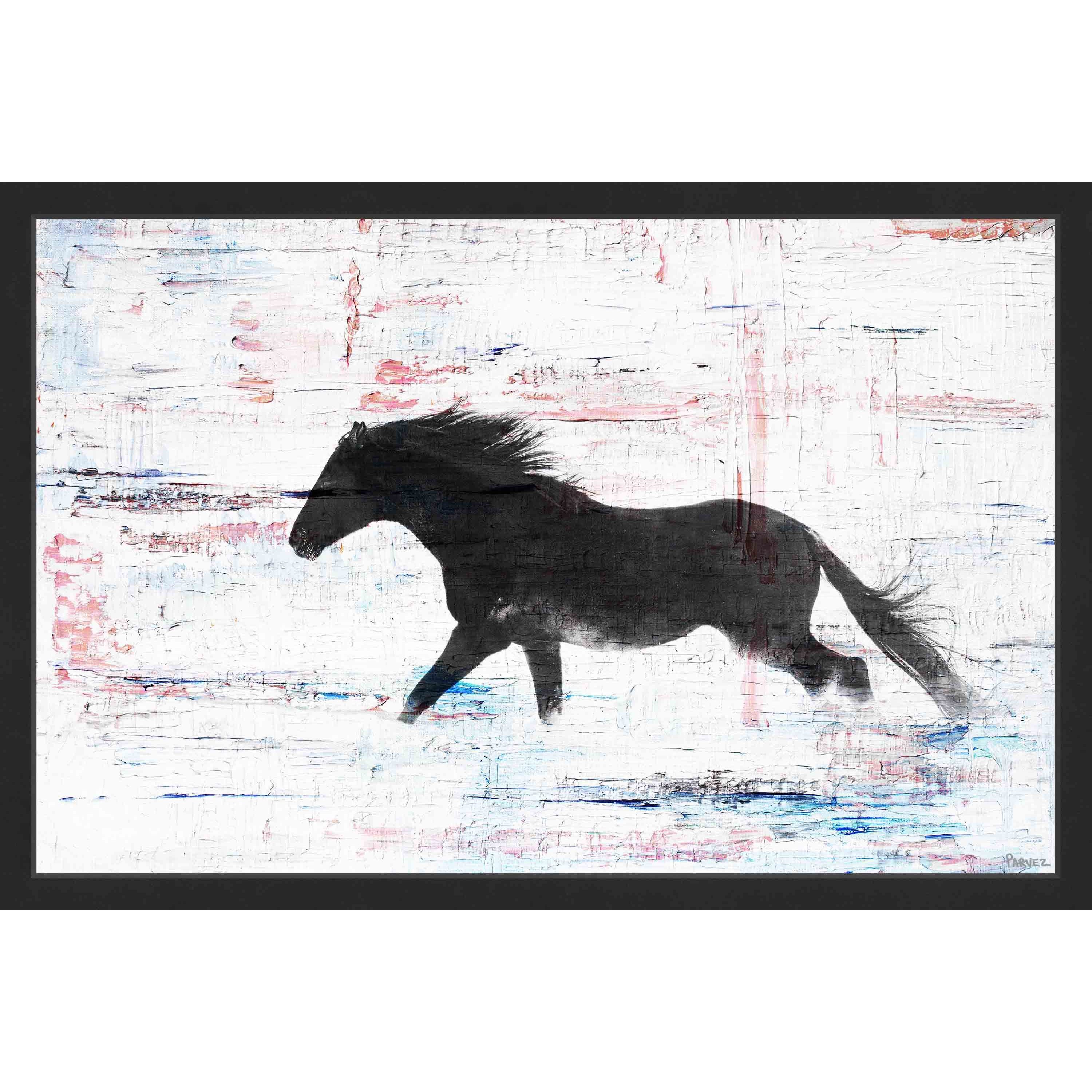 Handmade Parvez Taj - Black Horse Stride Framed Print