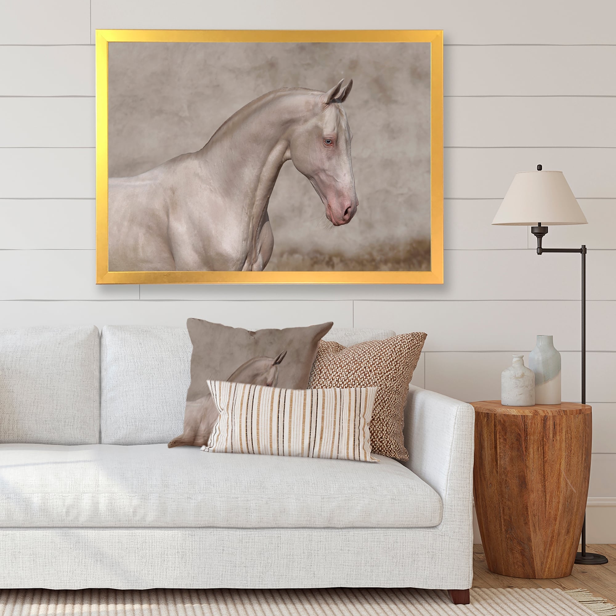 Designart "Portrait of a White Horse" Farmhouse Framed Canvas Wall Art Print