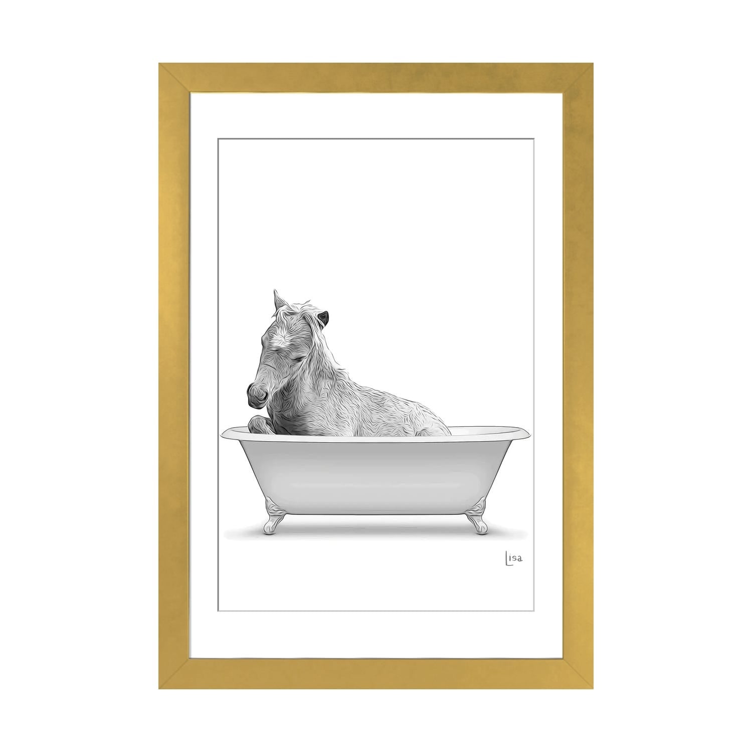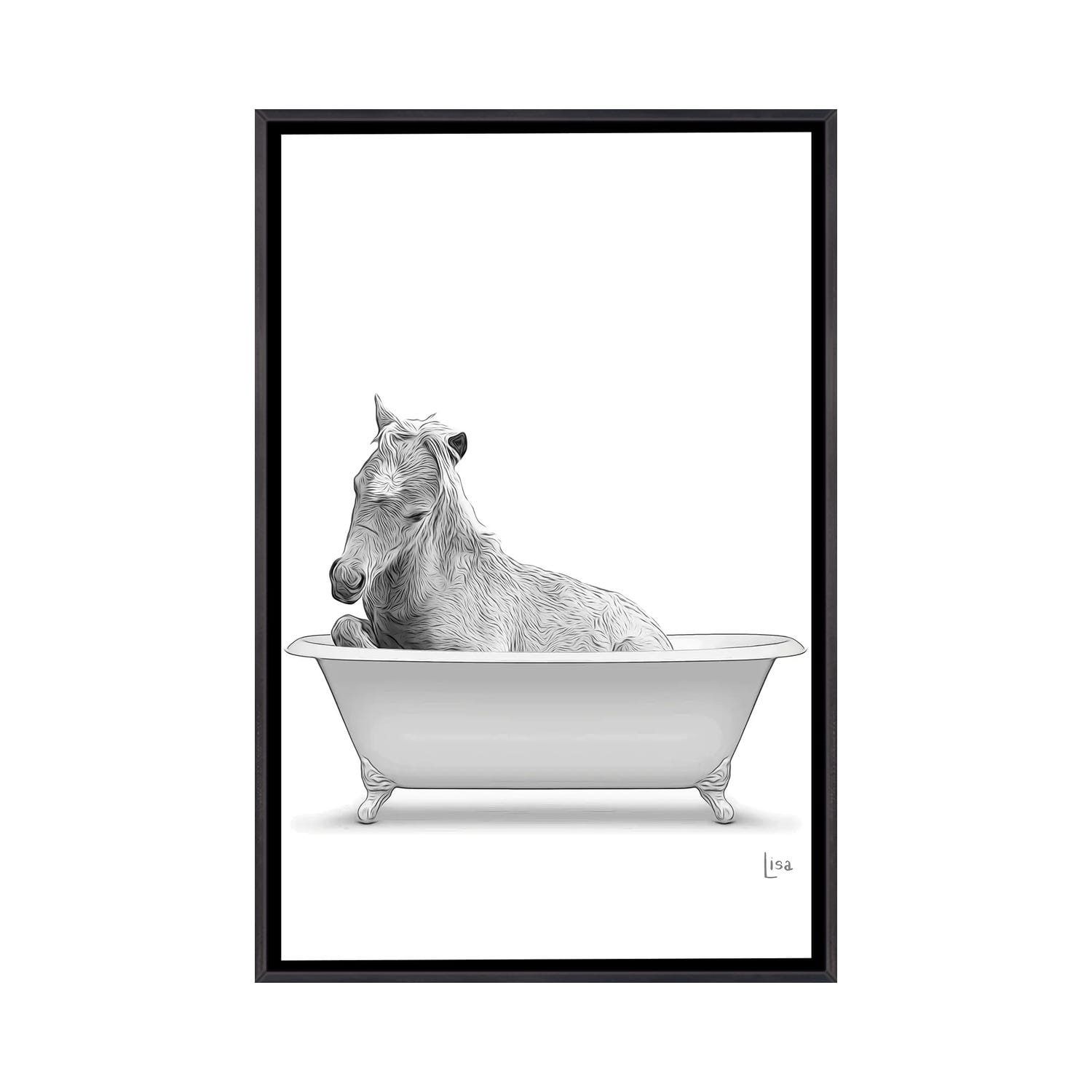 iCanvas "Horse In the Bath Bw" by Printable Lisa's Pets Framed