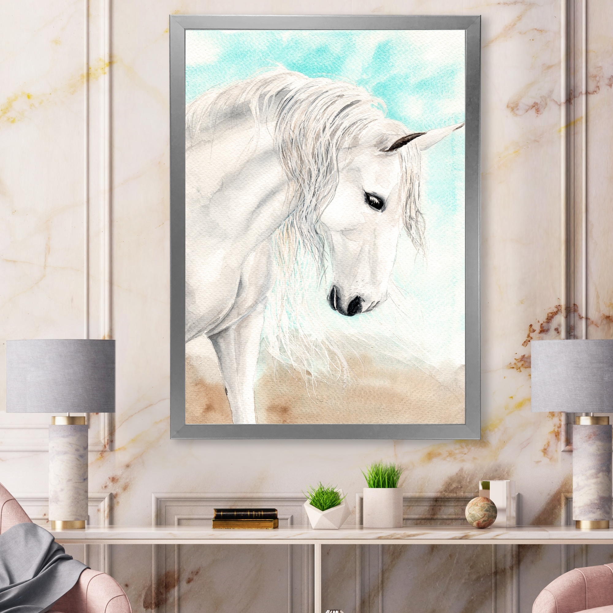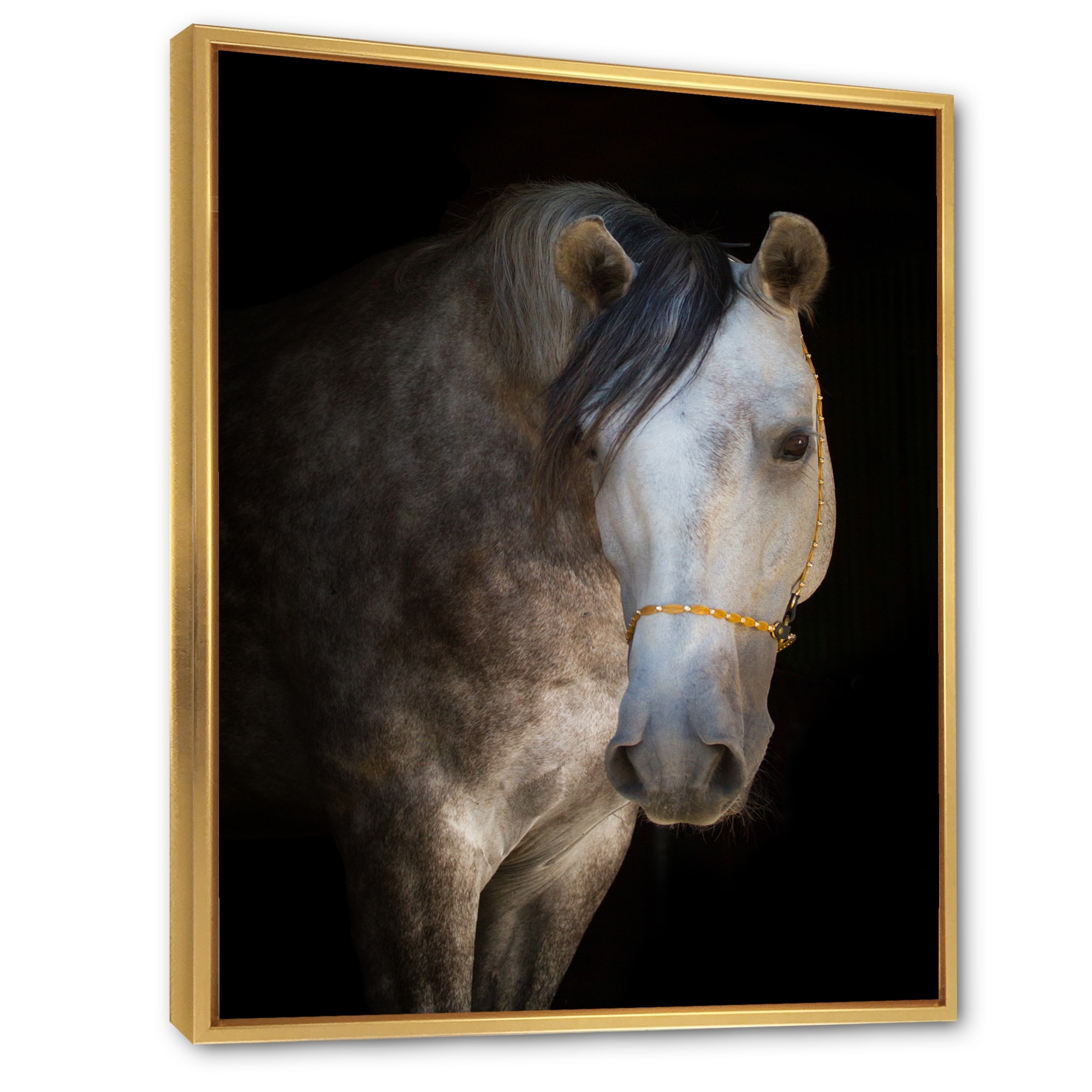 Designart "Portrait Of a White Horse With Long White Mane" Traditional Framed Art Print