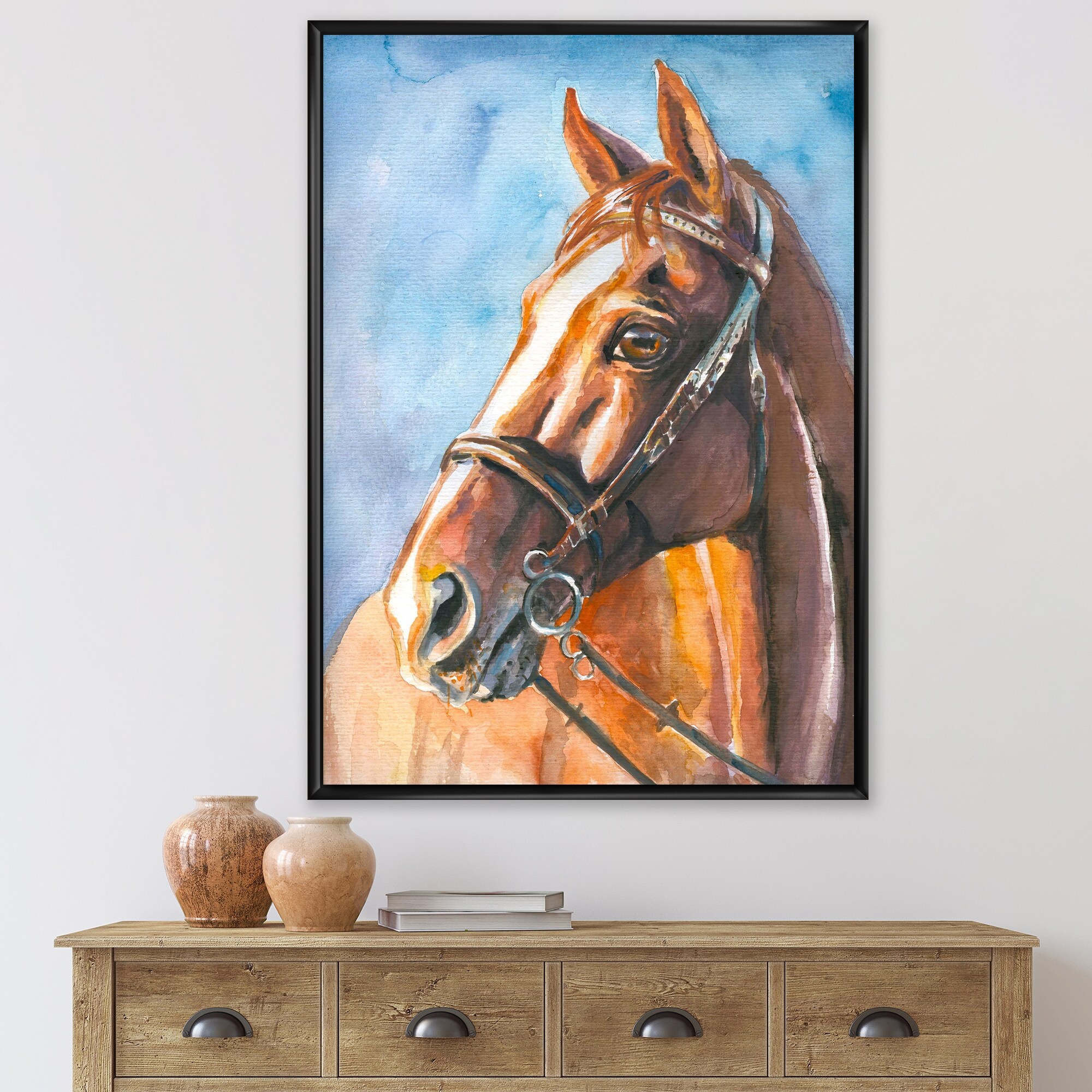 Designart "Portrait Of a Horse IV" Traditional Framed Canvas Wall Art Print