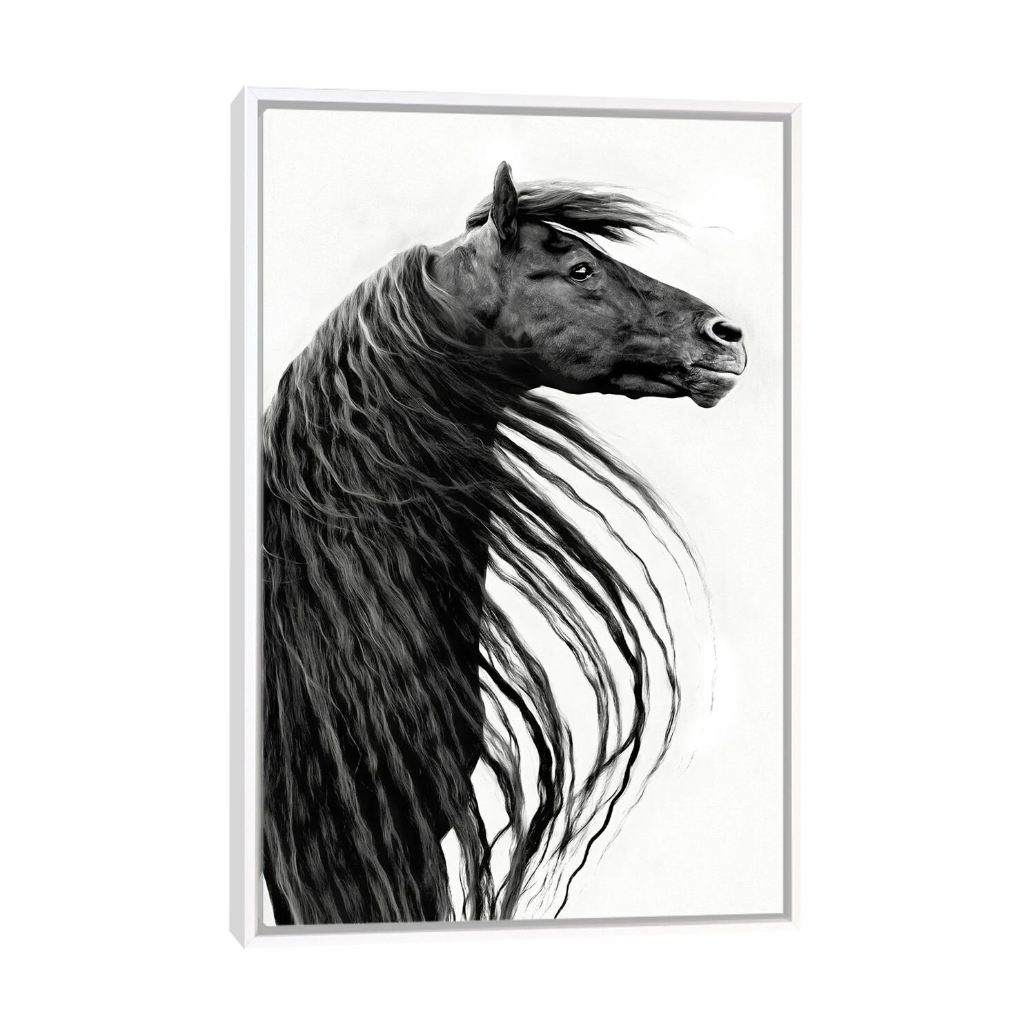 iCanvas "Black and White Horse Portrait II" by PHBurchett Framed Canvas Print