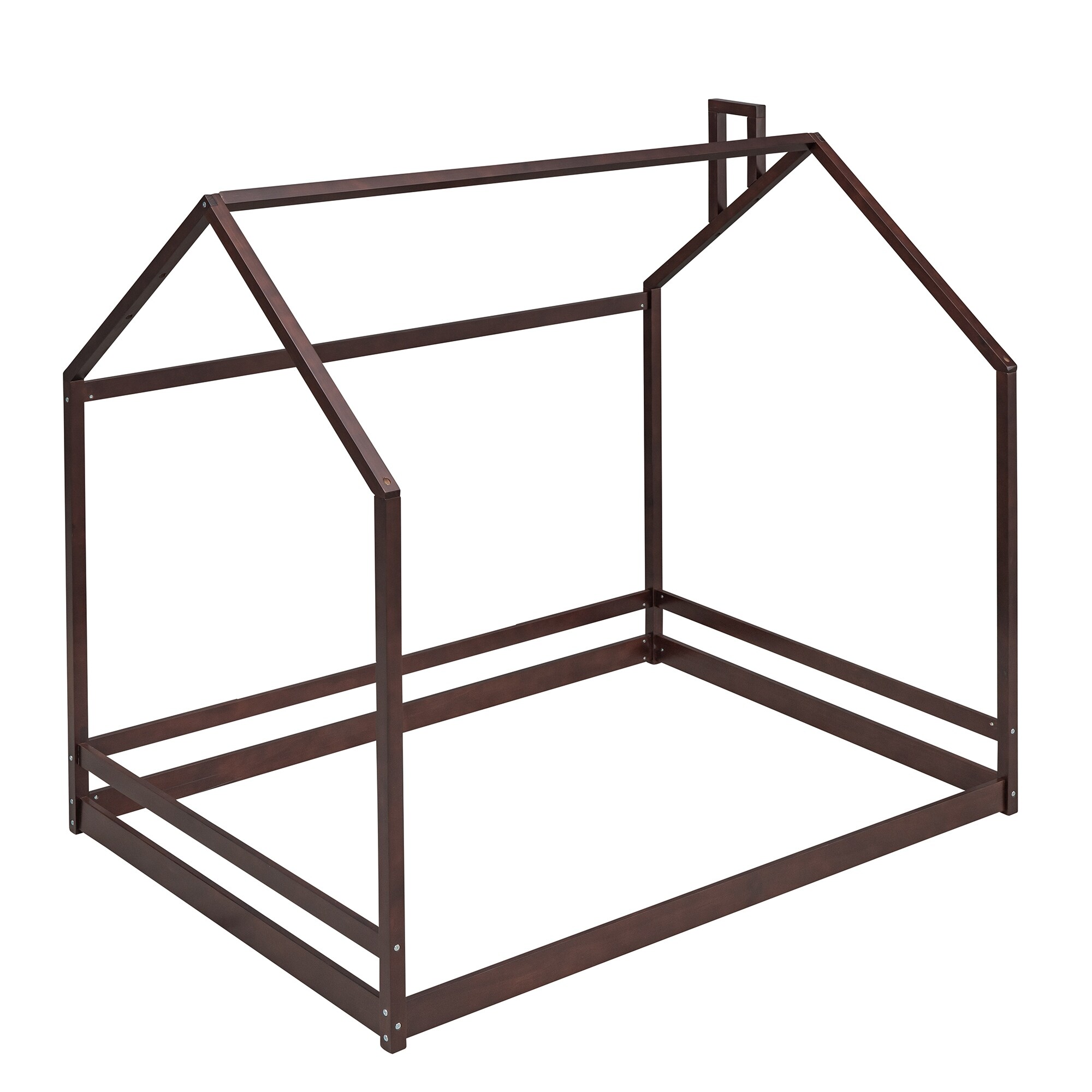 wooden house-shaped roof frame Twin Size Floor Wooden Bed