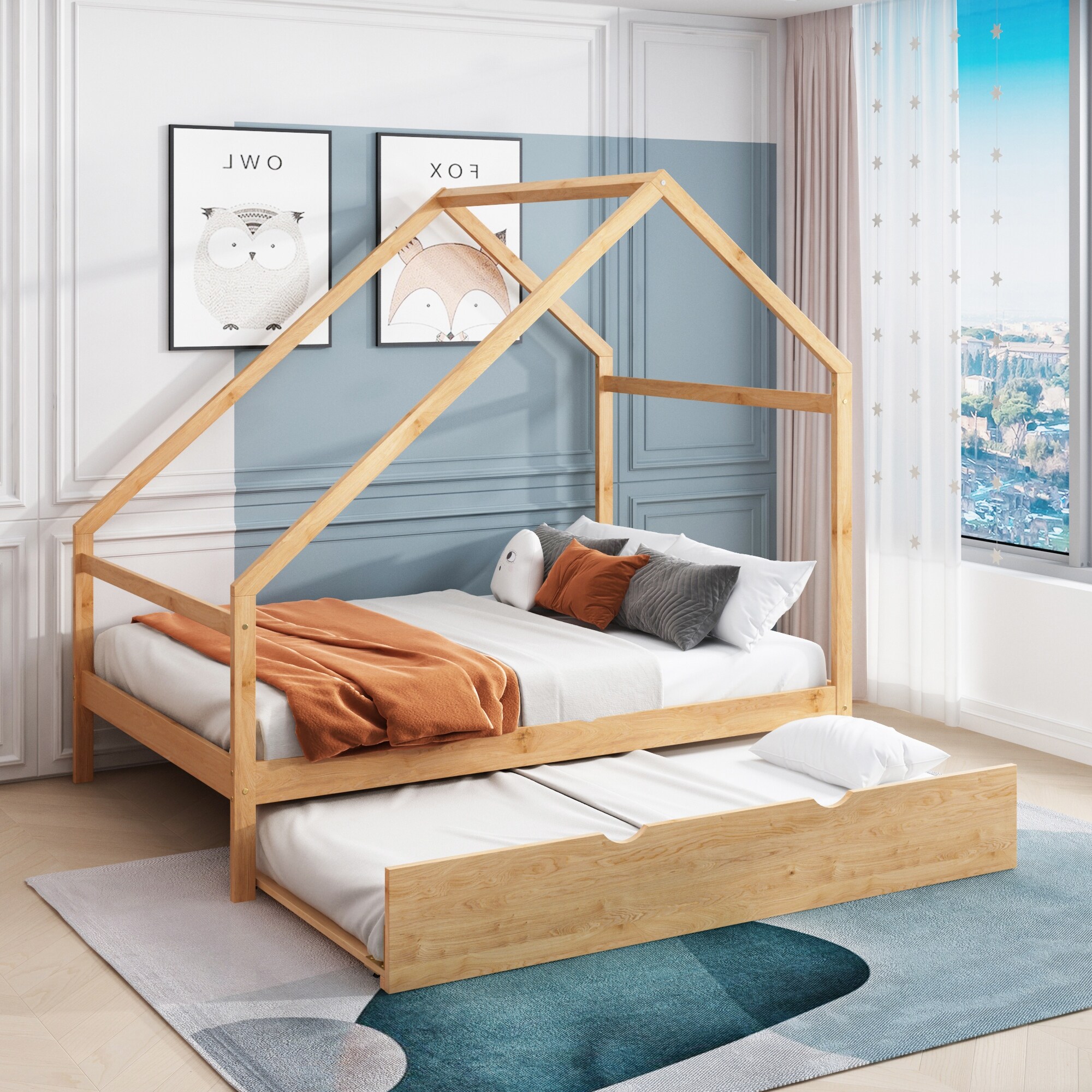 Modern Twin Size Wooden House Bed With Twin Size Trundle