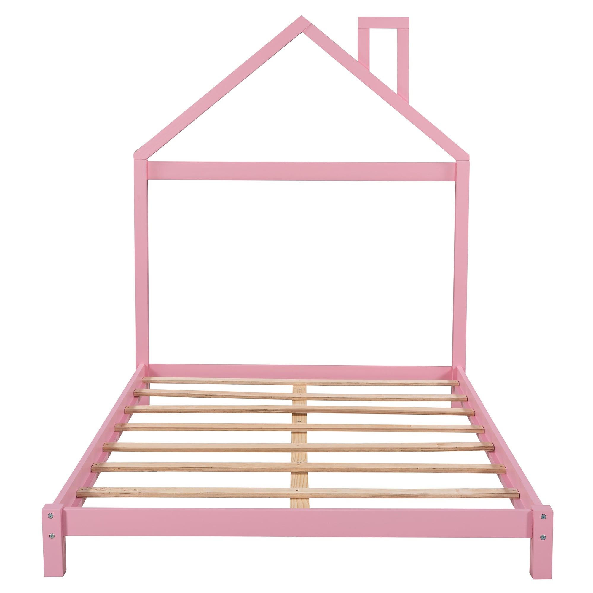 Wood Platform Bed with House-shaped Headboard,Full Size