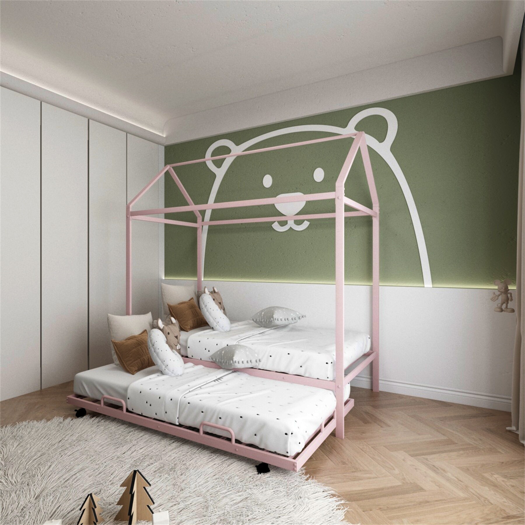 Modern Twin Size Metal House Shape Platform Bed with Trundle