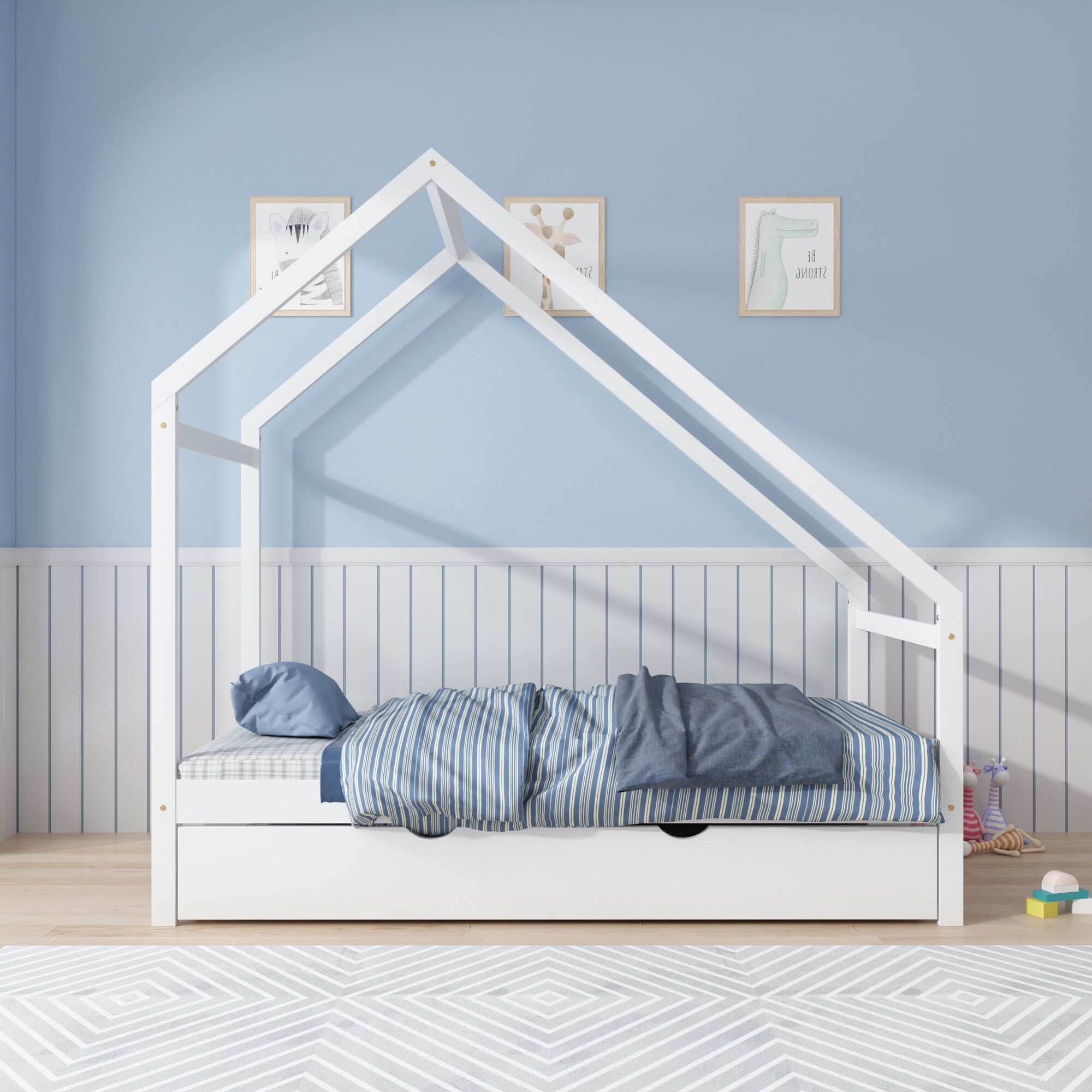 Imaginative House Bed, Twin Size Wooden House Bed with Drawers, Daybed with Spacious Storage