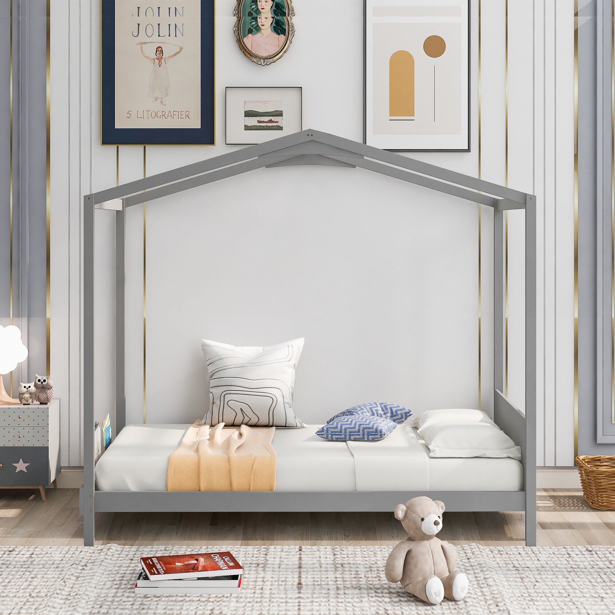 Twin Size Wooden House Bed, Kids Bed