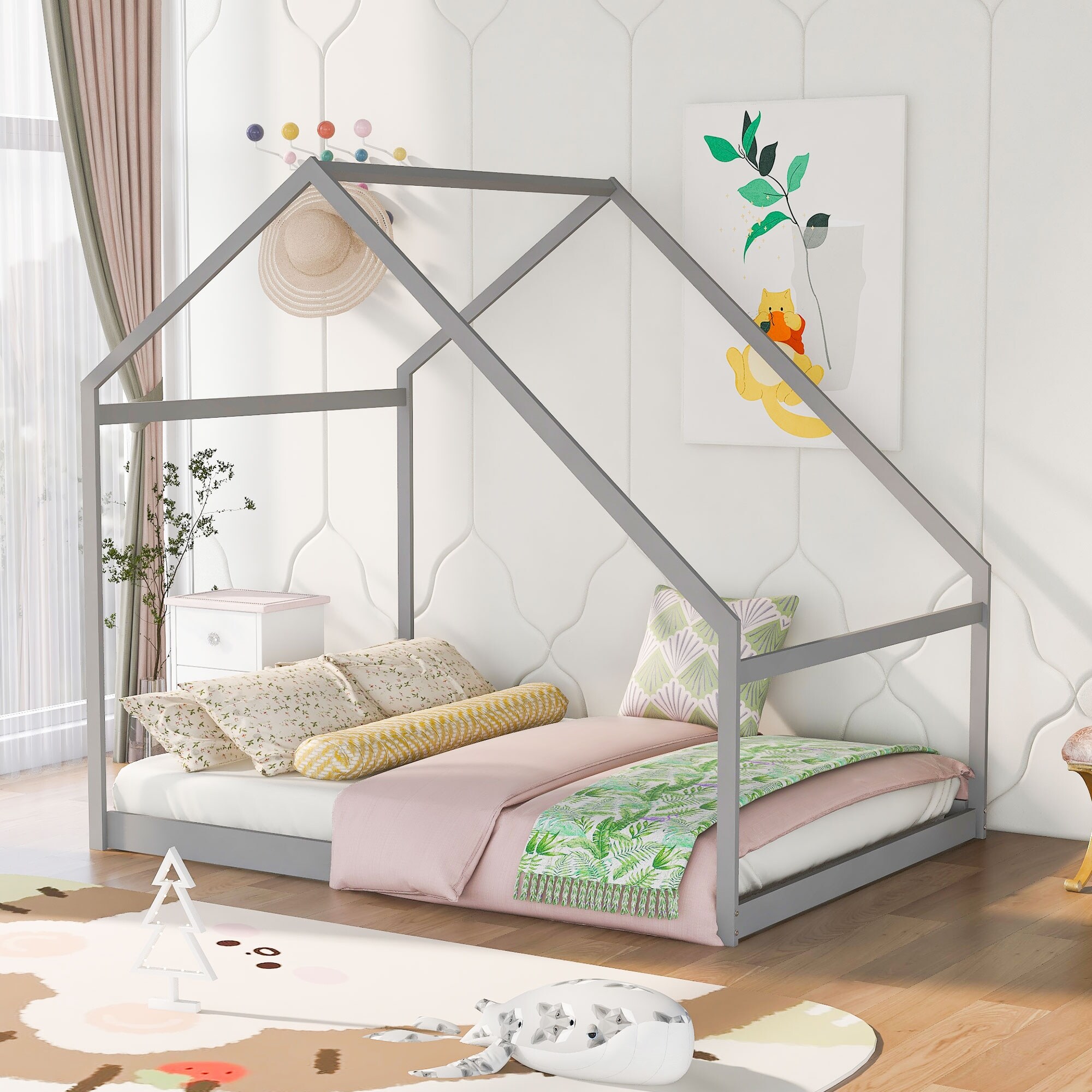 House Bed Frame Twin Size,Metal Platform Bed Floor Bed