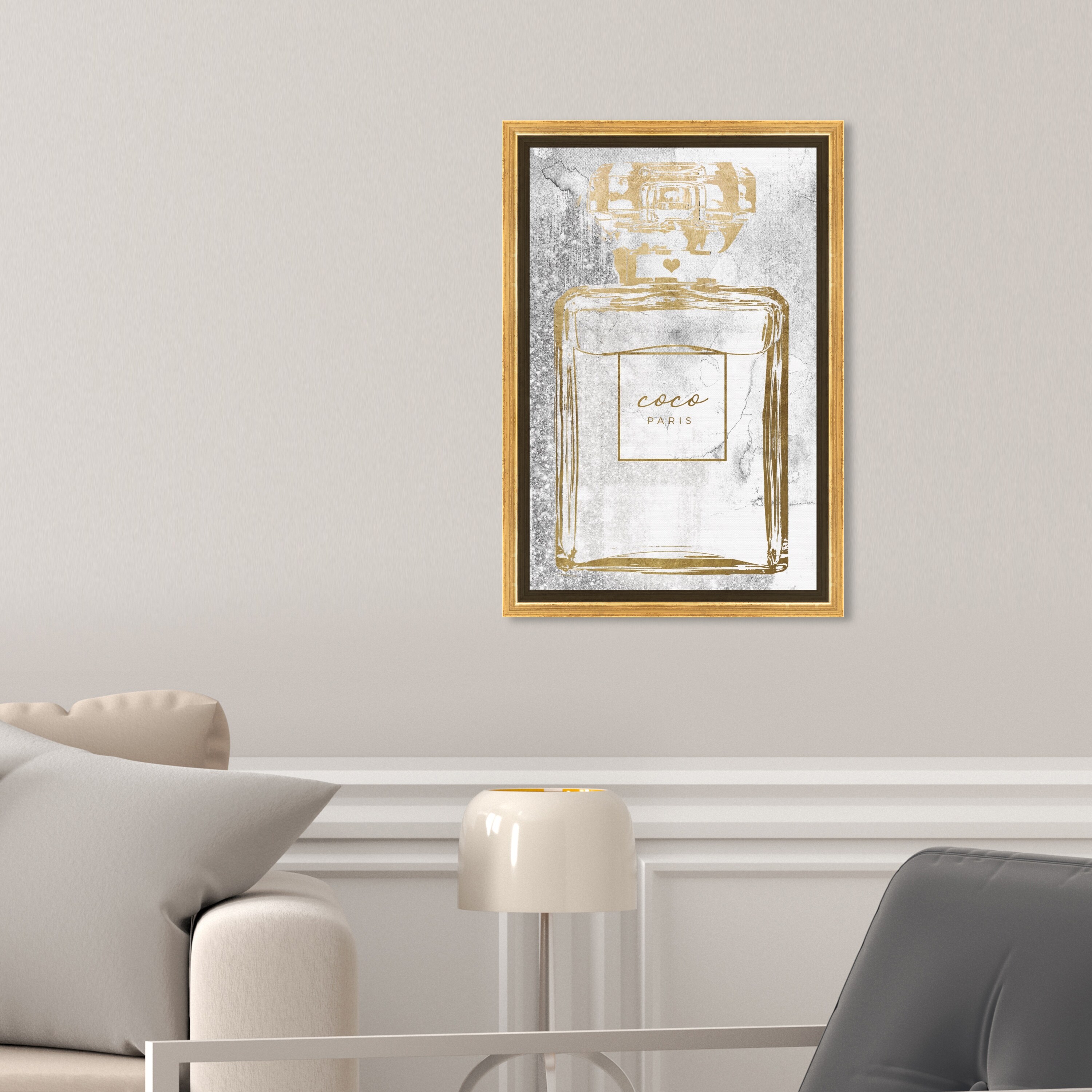 Oliver Gal 'Gold Infinite Perfume' Fashion and Glam Wall Art Framed Canvas Print Perfumes - Gold, Gray