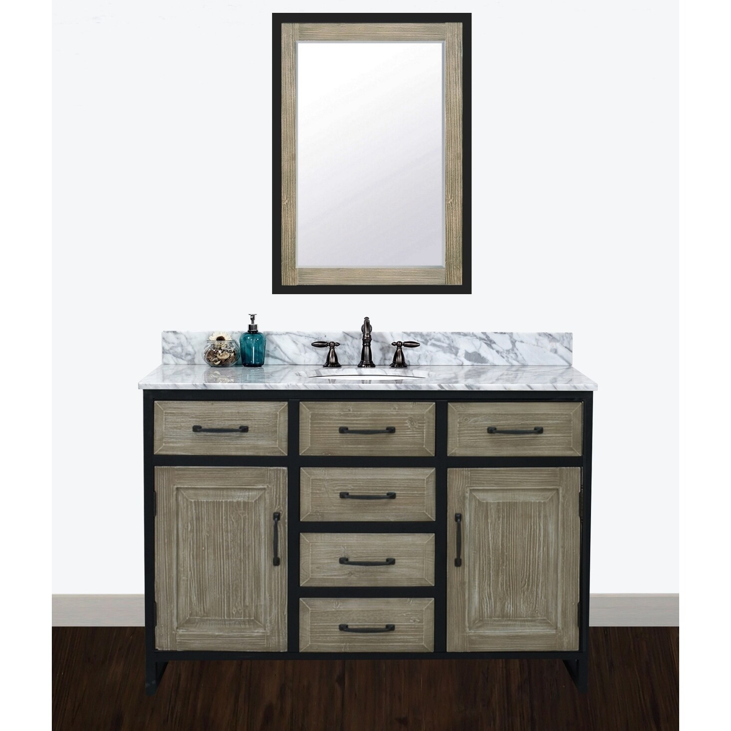 48"Rustic Solid Fir Single Sink Iron Frame Vanity in Driftwood Finish with Marble Top-No Faucet
