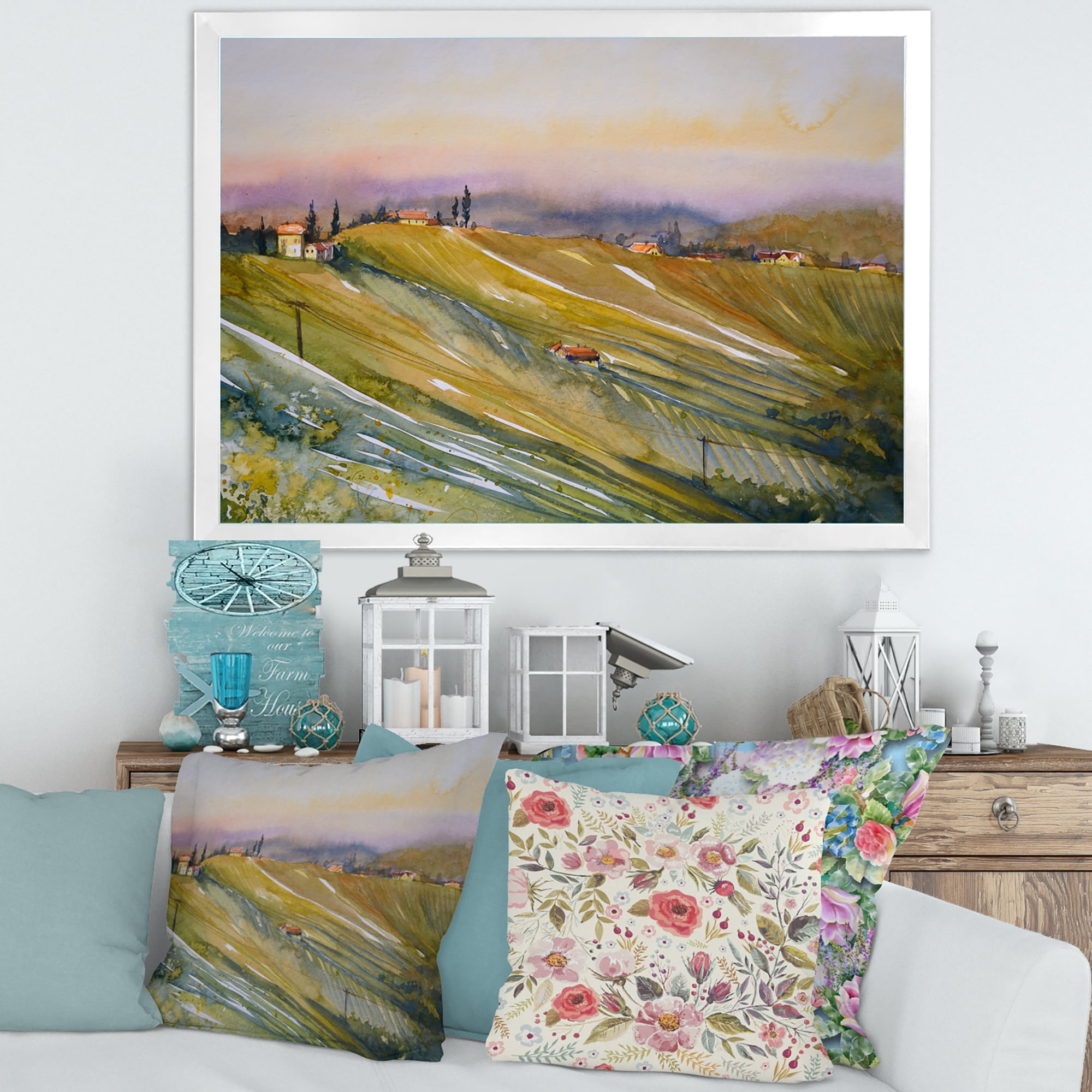 Designart "Vineyard At Dawn in Tuscany Italy" Country Framed Art Print
