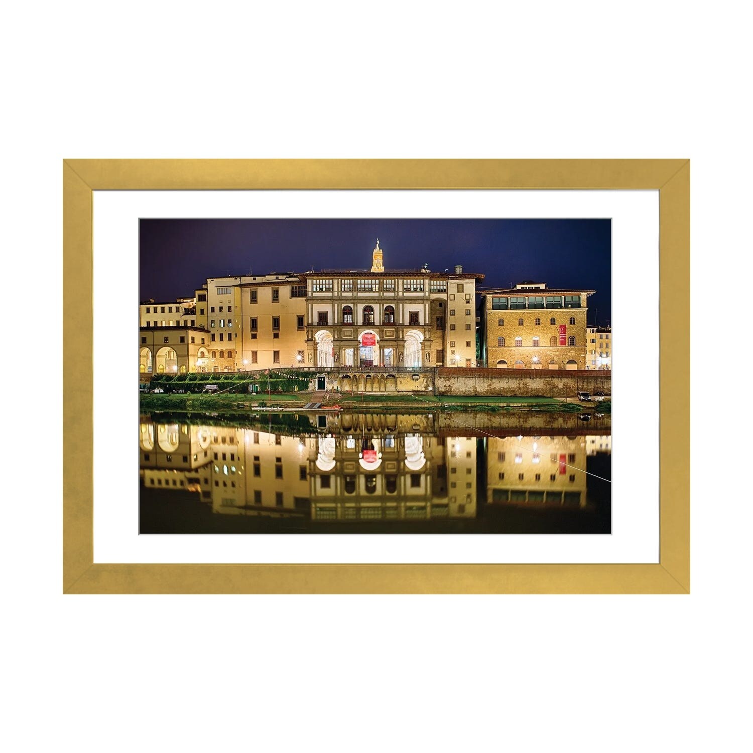 iCanvas "Night Reflection of the Uffizi Gallery in the Arno River, Florence, Tuscany, Italy" by George Oze PFA