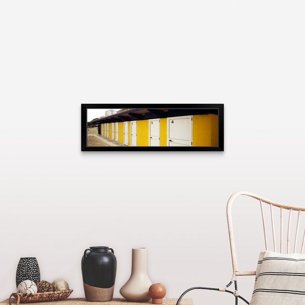"Facade of a beach hut, Lignano Sabbiadoro, Italy" Black Framed Print
