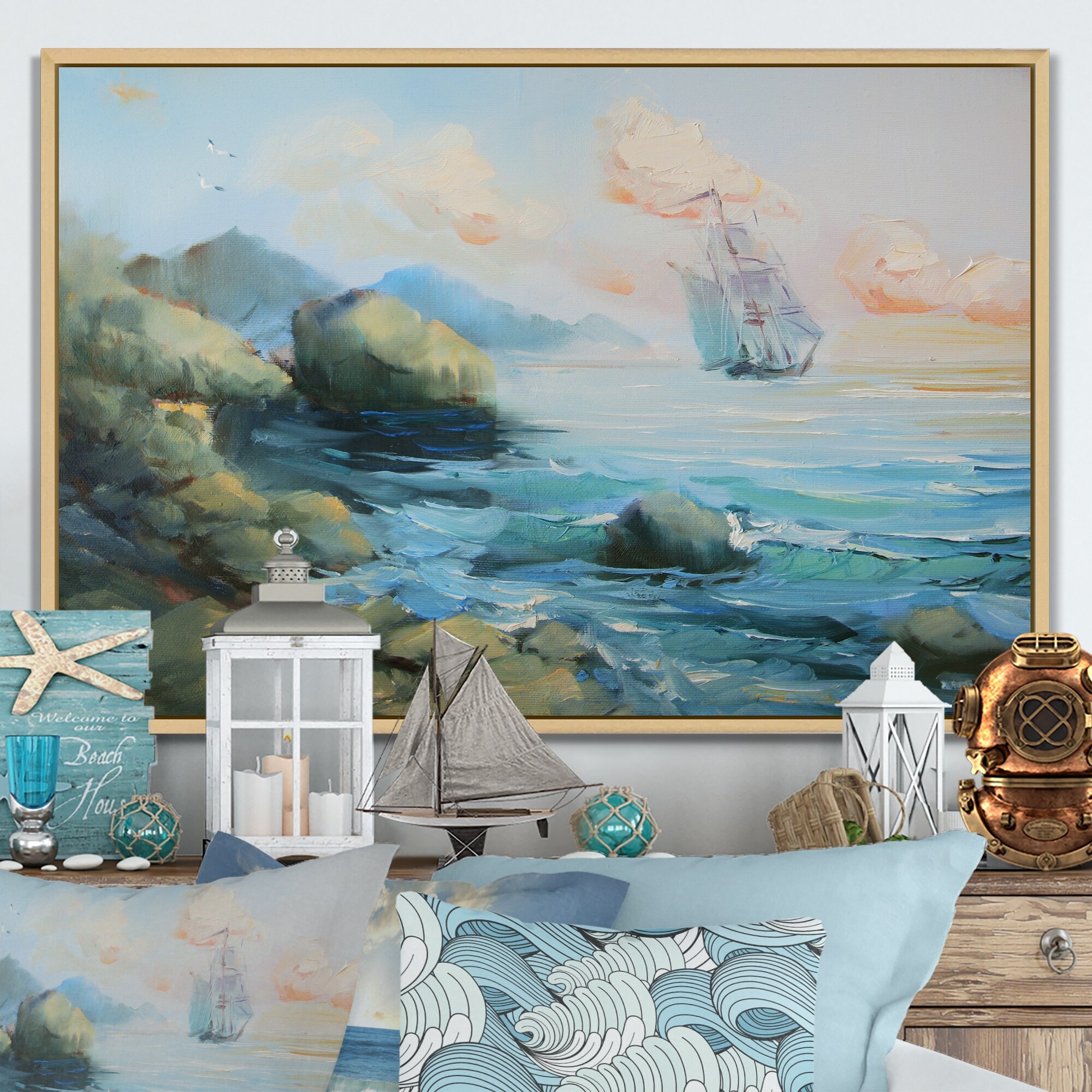Designart "Italy Coast Sea Painting" Nautical & Coastal Framed artwork