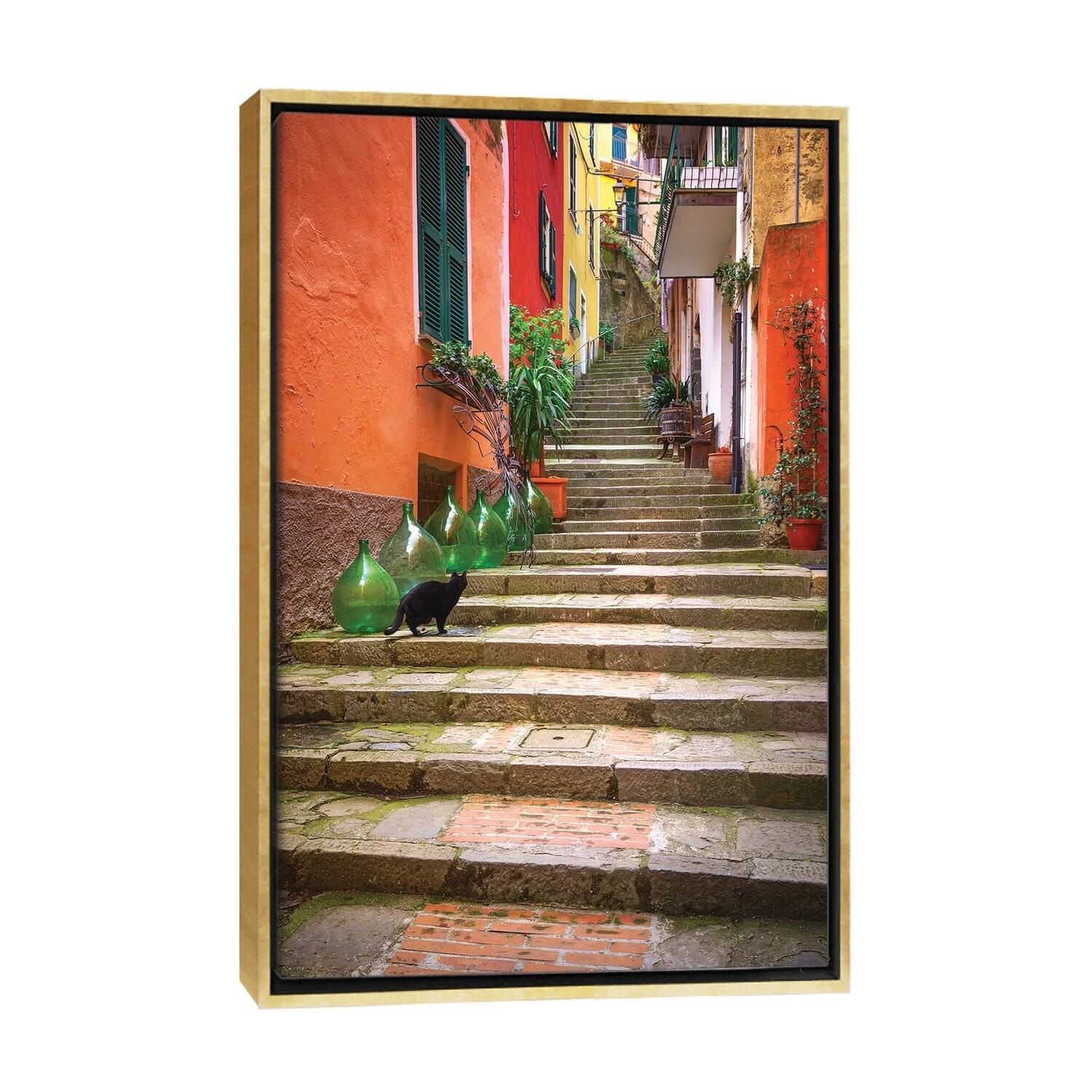 iCanvas "Europe, Italy, Monterosso. Cat on Long Stairway." by Jaynes Gallery Framed