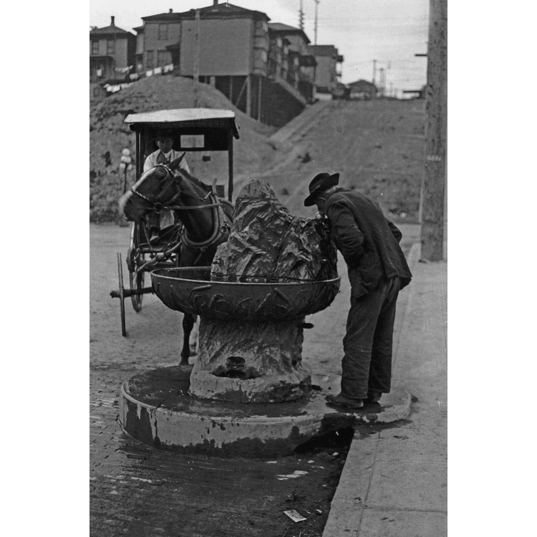 New-style drinking fountain at 7th and Jackson Black and White Cityscape Gallery Wrapped Canvas