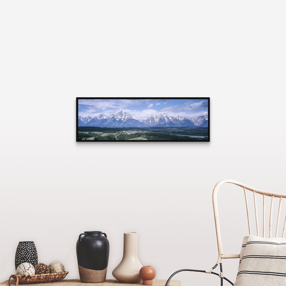 "Landscape with mountains in the background, Jackson Hole, Grand Teton Nationa" Black Float Frame Canvas Art