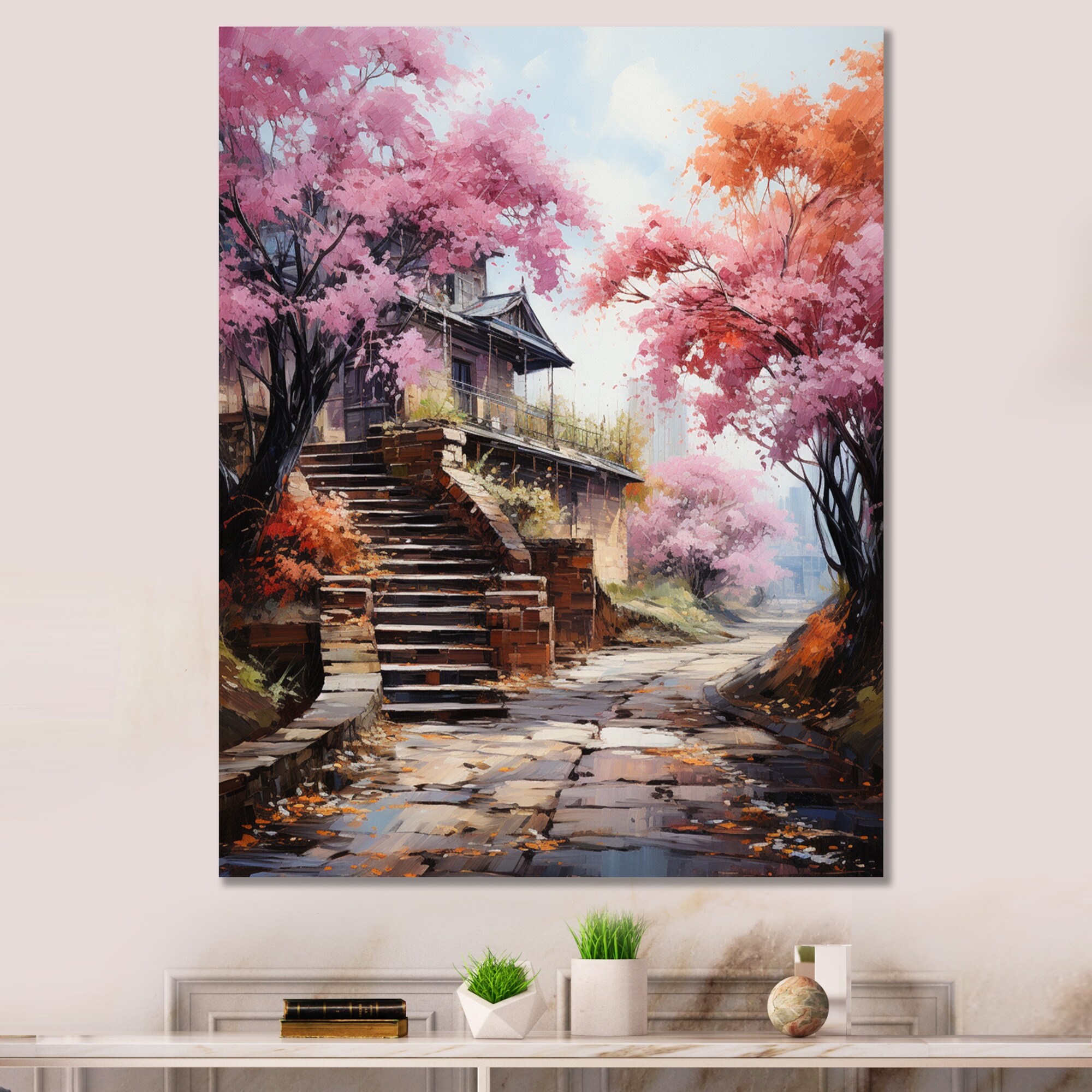 Designart "Japon Art Pink Blossoming Path" Japan Art Canvas Wall Art