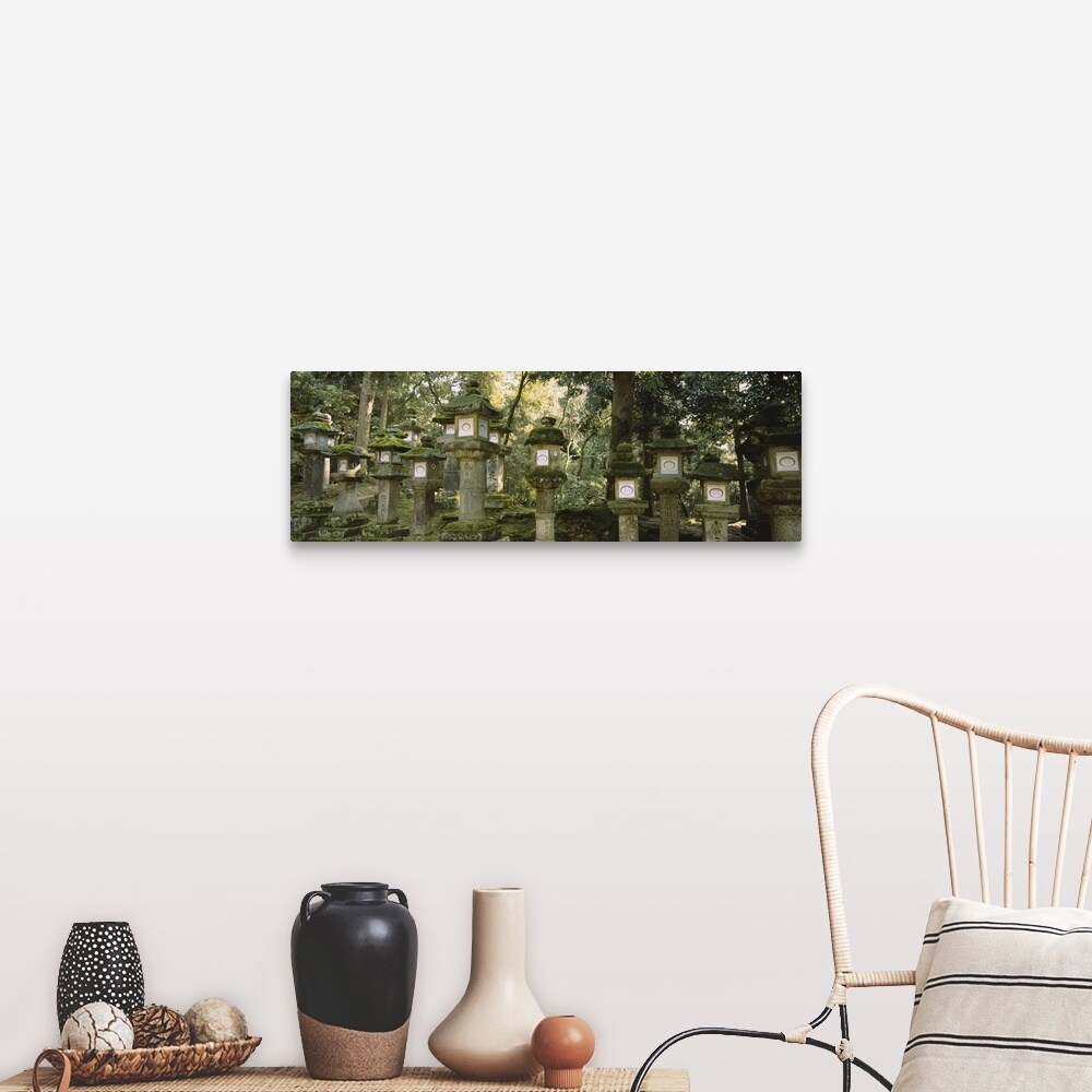 "Low angle view of stone lanterns, Kasuga Taisha, Nara, Japan" Canvas Wall Art