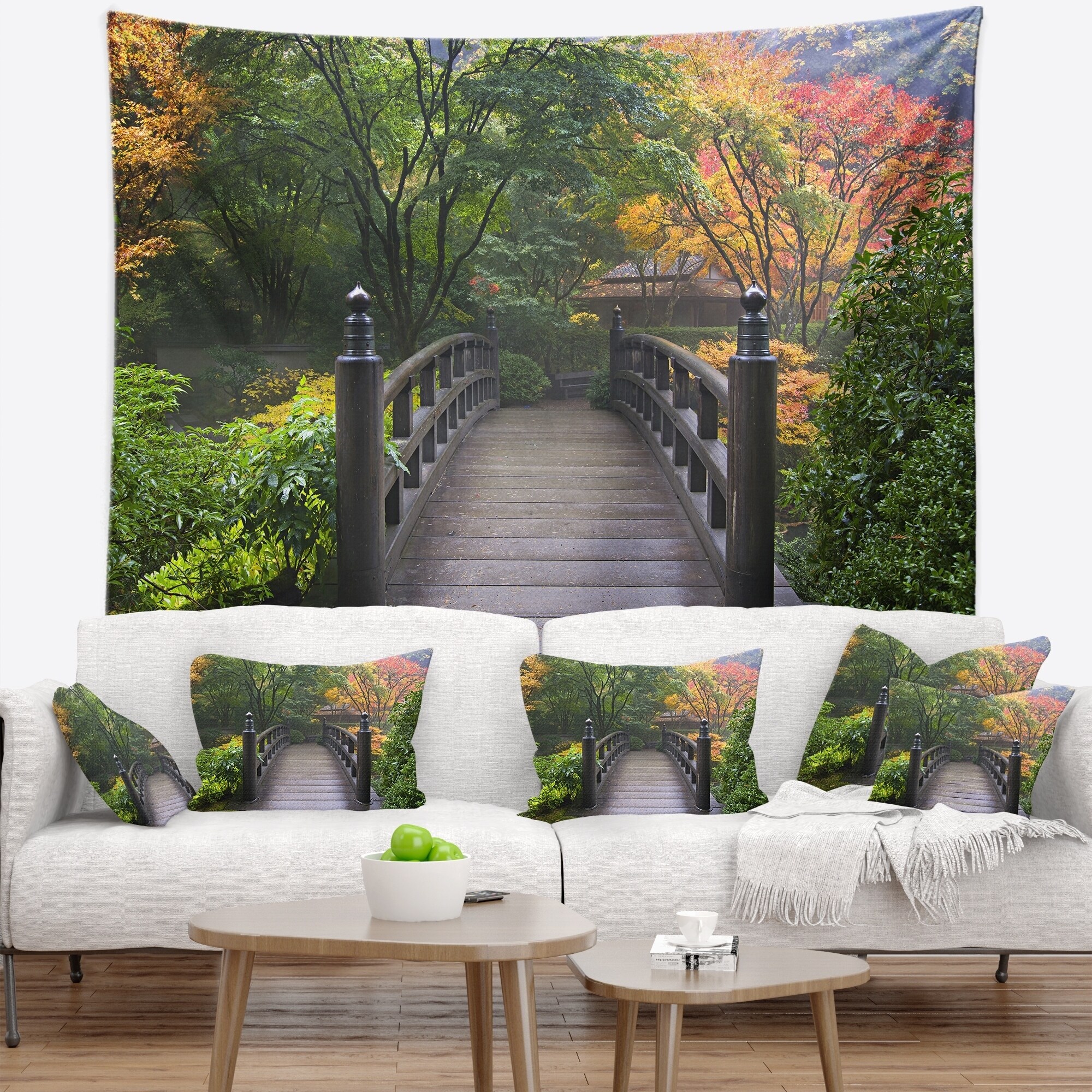 Designart 'Wood Bridge at Japanese Garden in Fall' Bridge Wall Tapestry