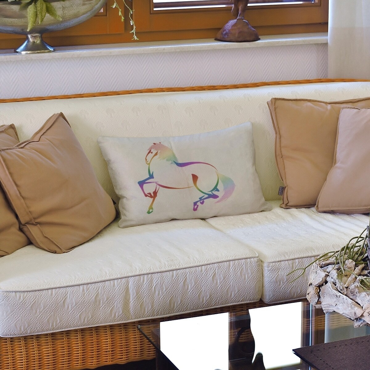 Japanese Vintage Watercolor Horse Lumbar Pillow