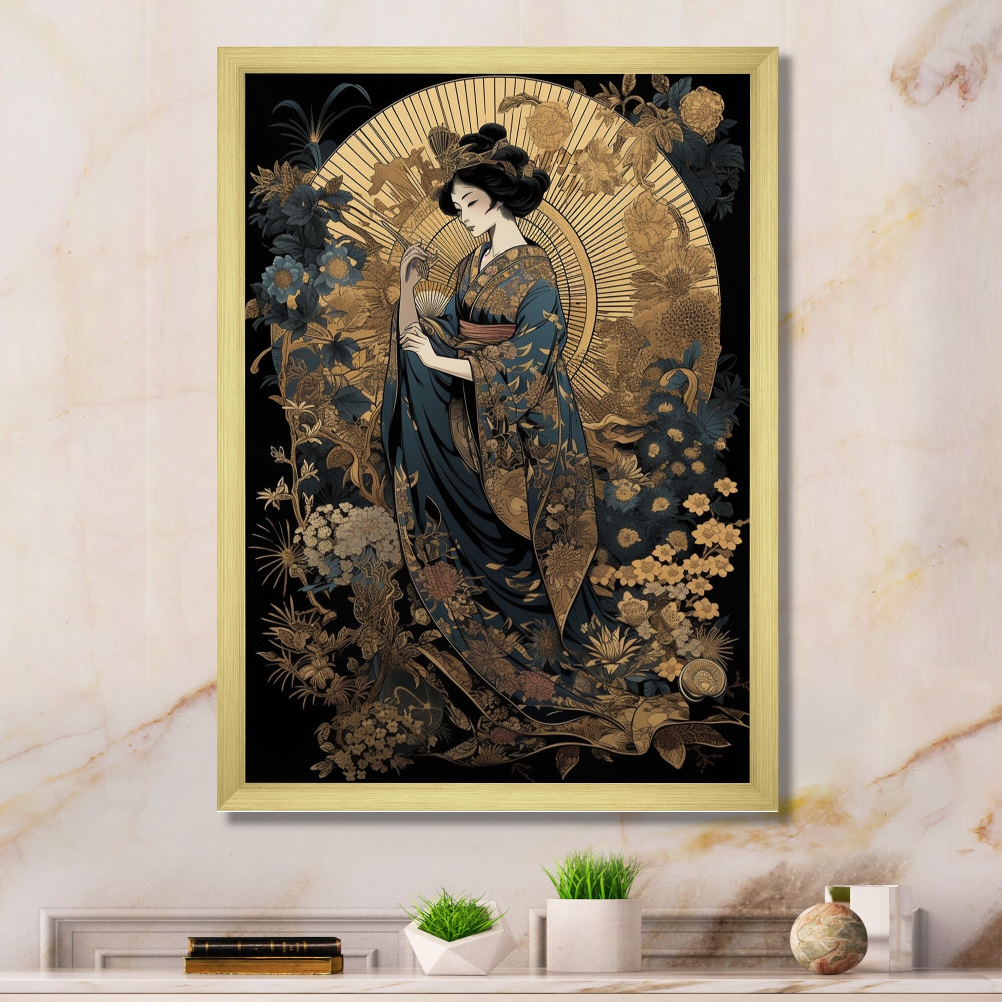 Designart "Elegant Japanese Woman Vii" Japon Woman Framed Wall Decor